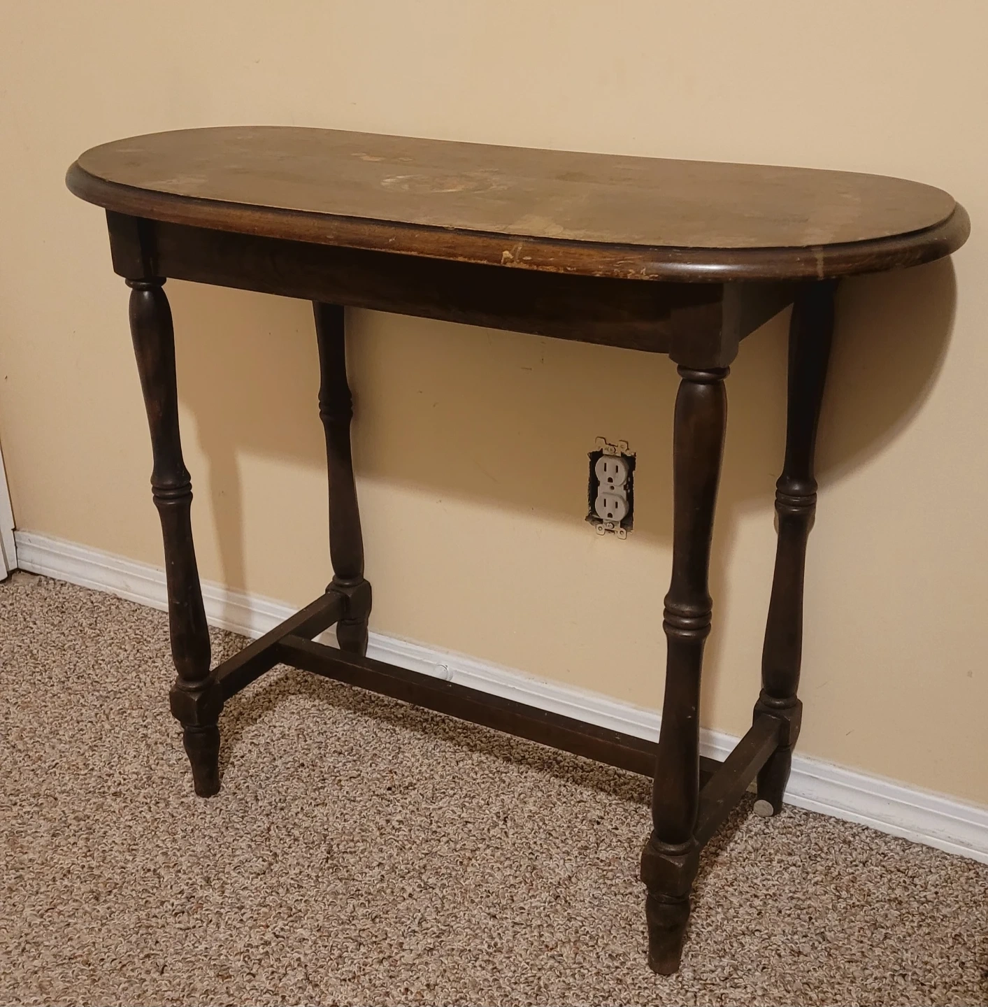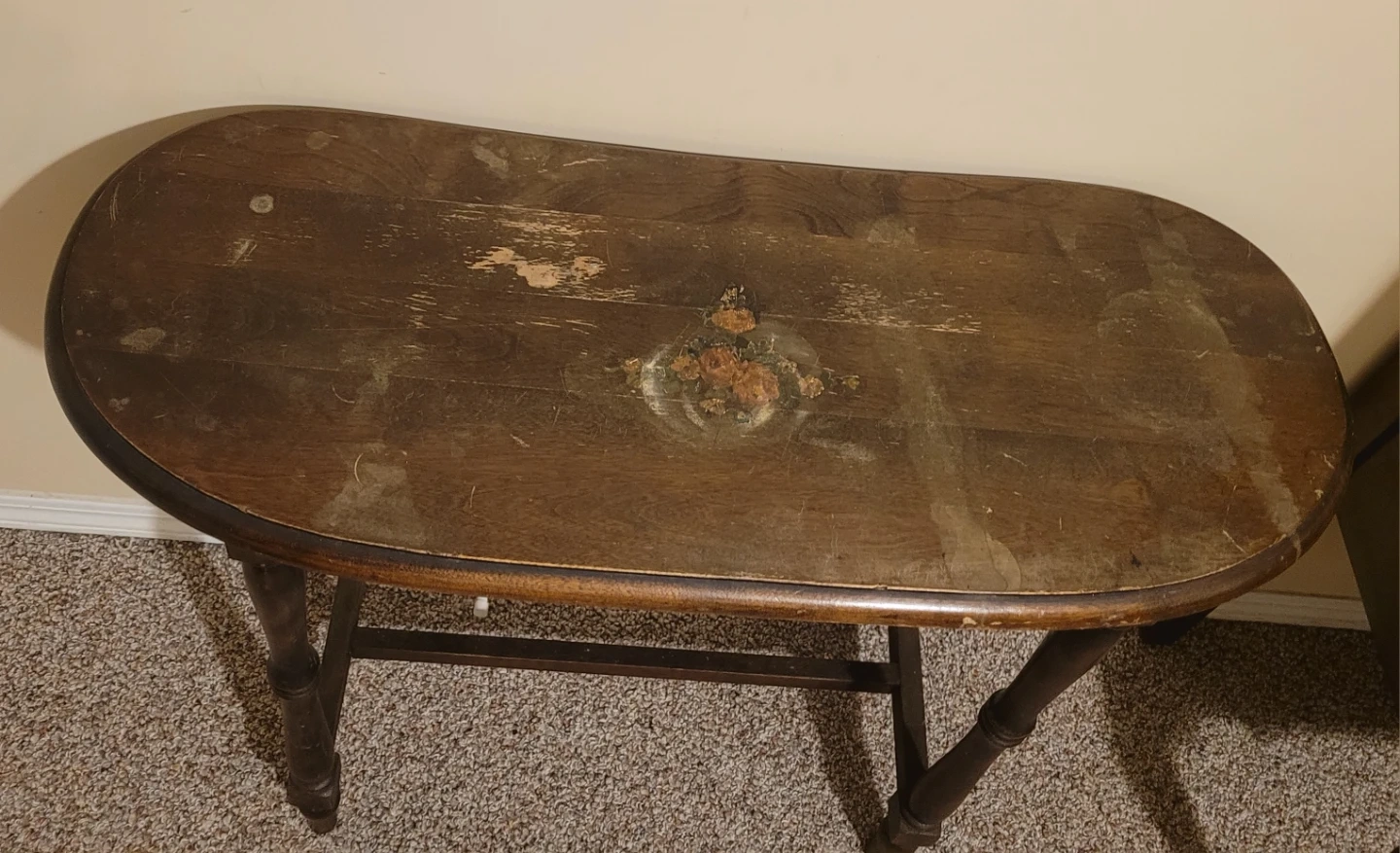 Top needs to be refinished. Used to have a rose design in the middle but hard to see with the wear.