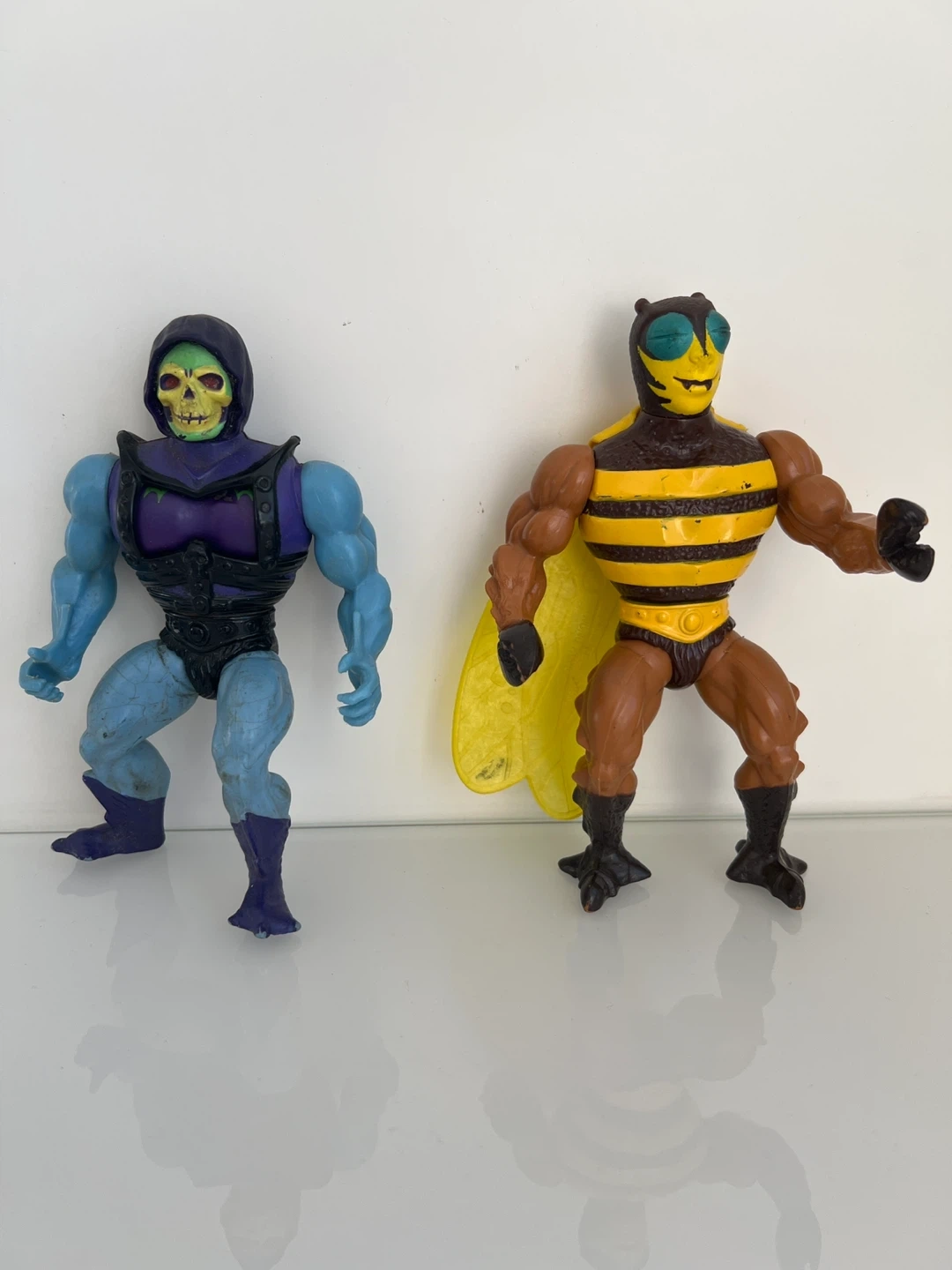 Vintage Masters of the Universe Skeletor and Buzz-Off action figures. Both figures are in used condition with some signs of wear. Perfect for any Masters of the Universe collector!