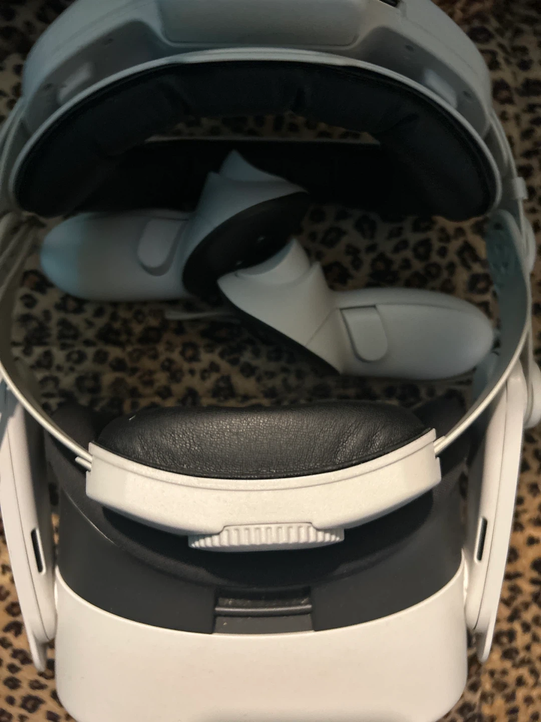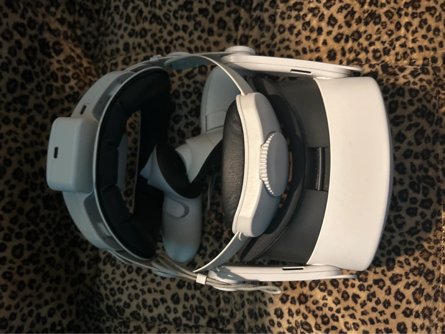 White Meta Quest 2 VR headset. Includes adjustable head strap and facial interface for comfort. It's designed for immersive virtual reality experiences.
