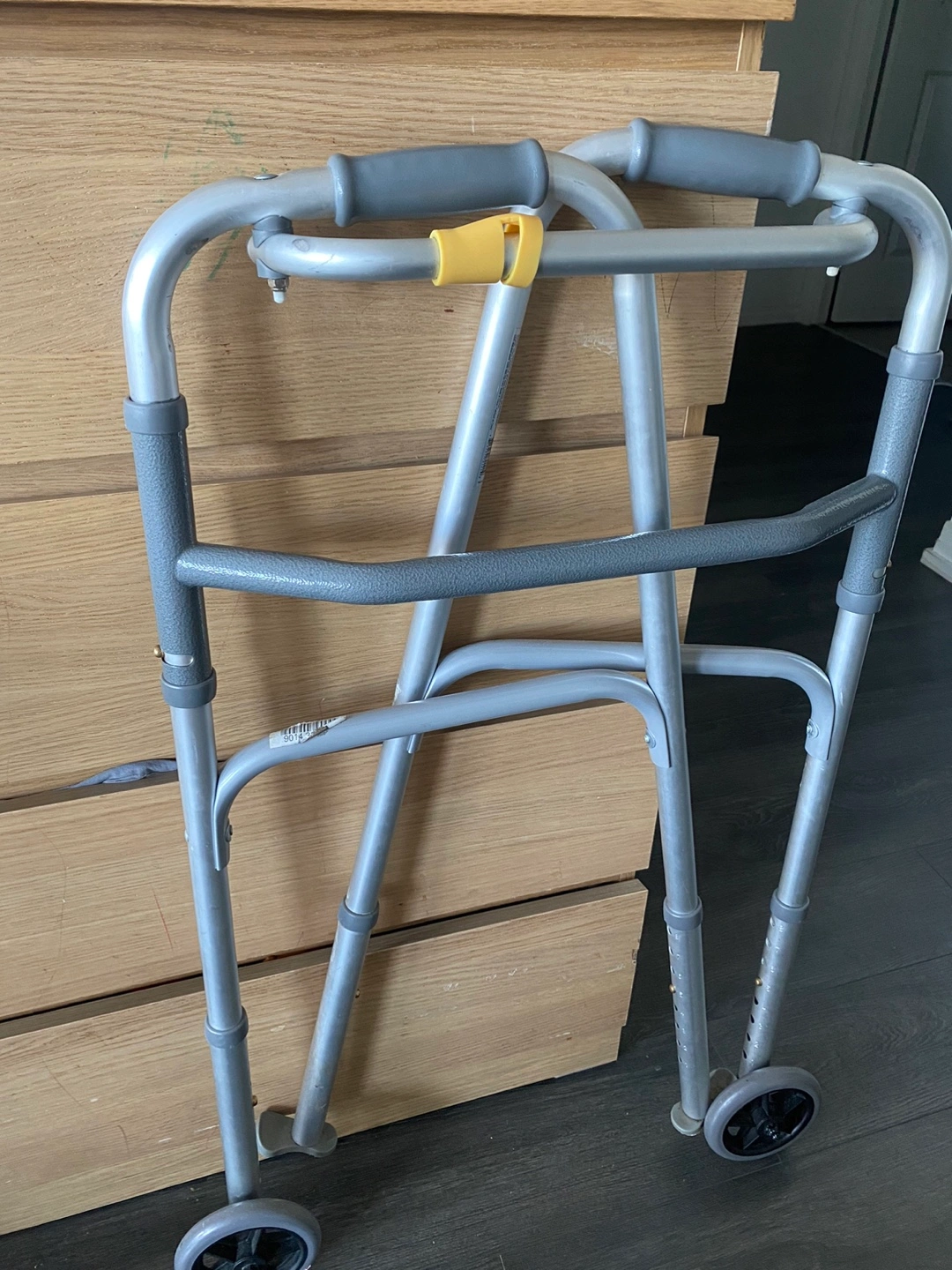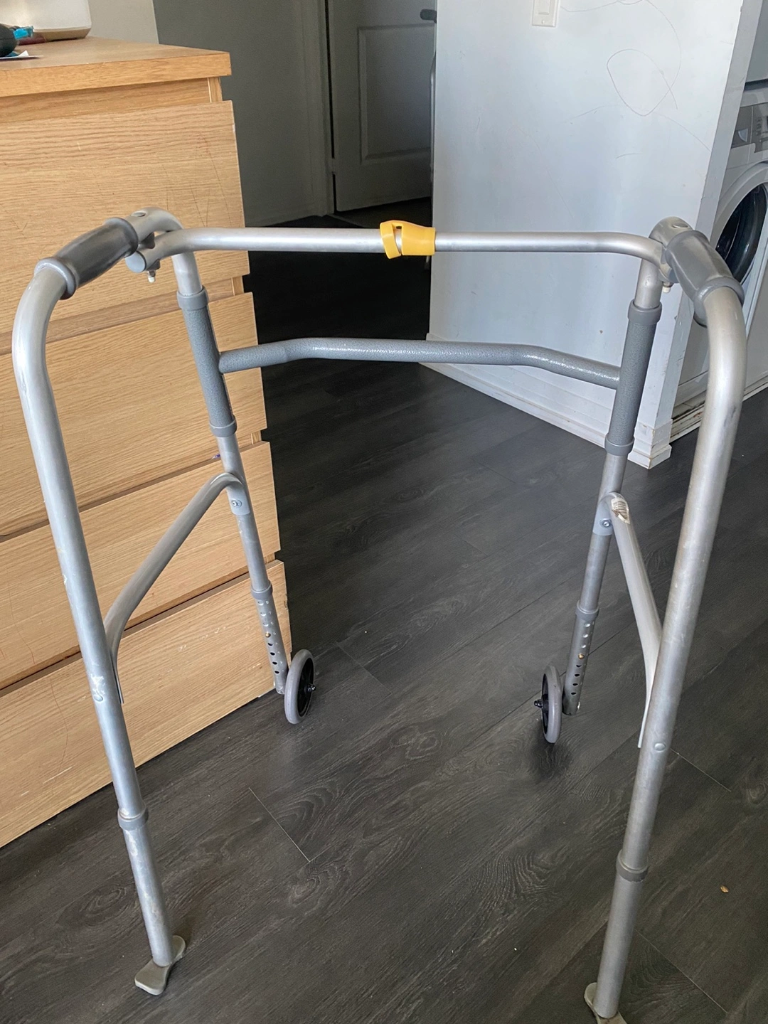 Walker with wheels! It's in good condition and ready to help someone get around. It’s yours for free if you come and pick it up.