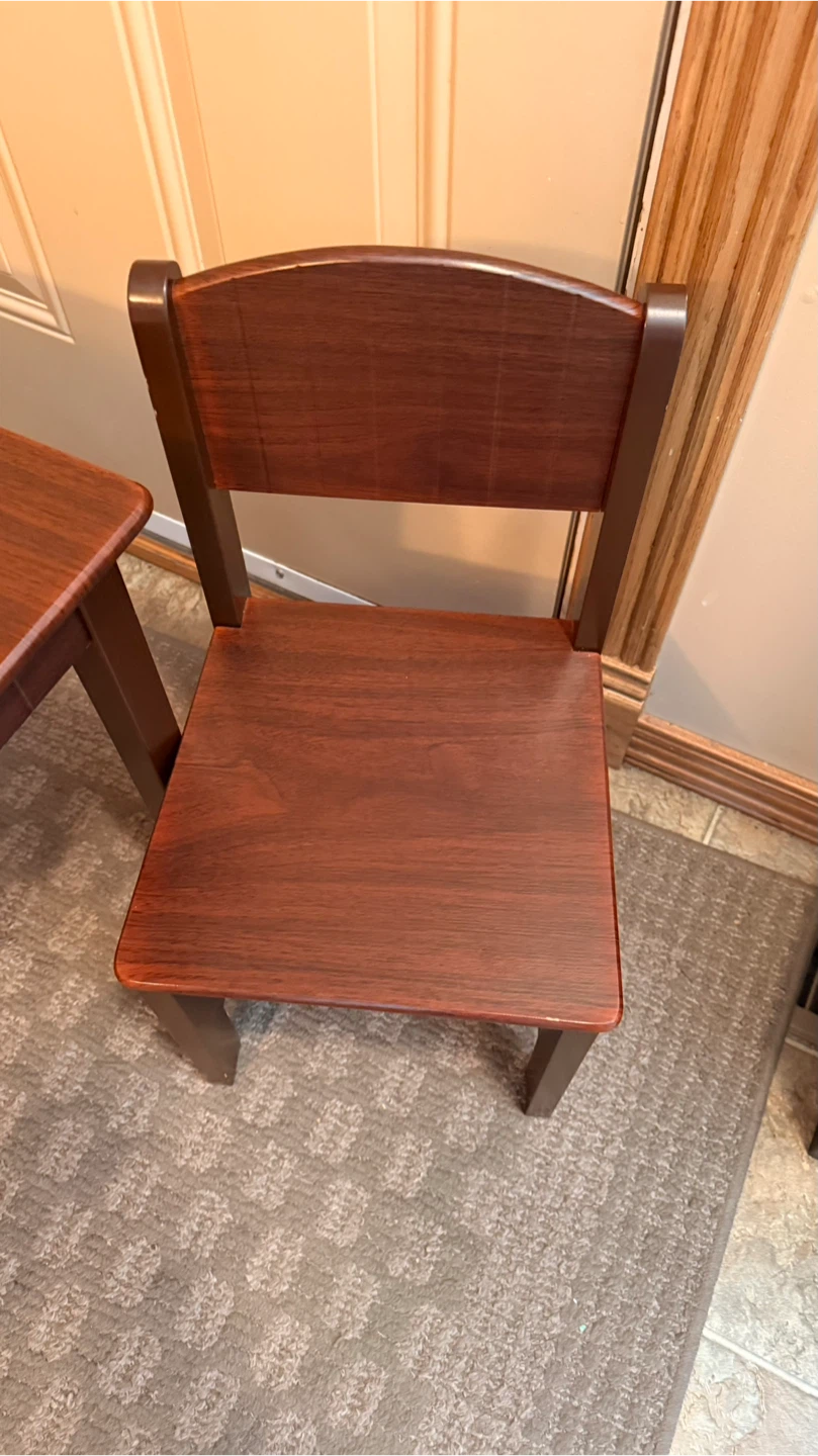 Selling a gently used kids' wooden table and chairs set. Perfect for arts and crafts, snack time, or homework! It's sturdy and in great condition, ready for a new home.