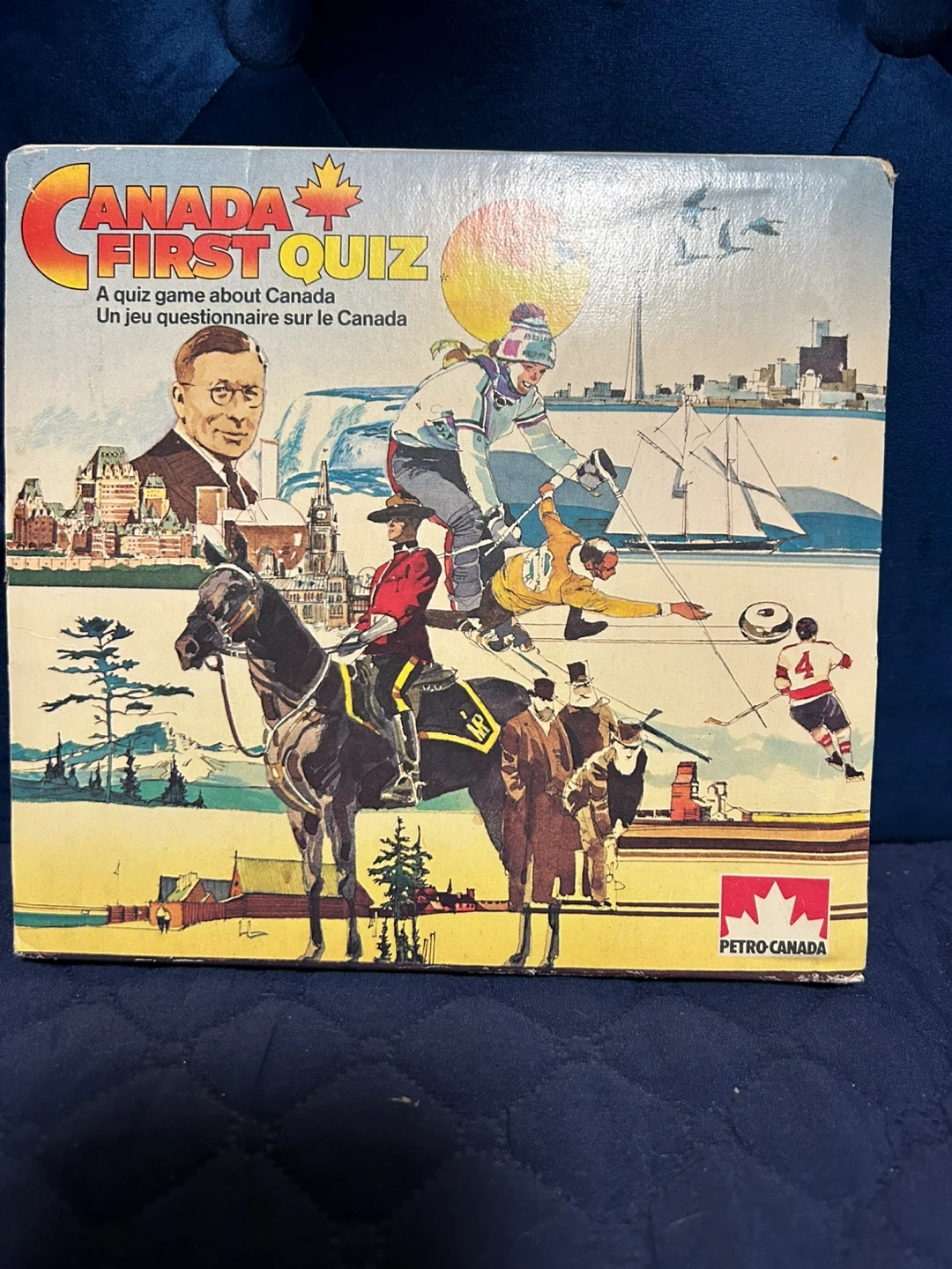 This is the Canada First Quiz board game, a fun way to learn about Canada. It's a quiz game with questions about Canadian history, geography, and culture. It includes all the necessary components for gameplay.