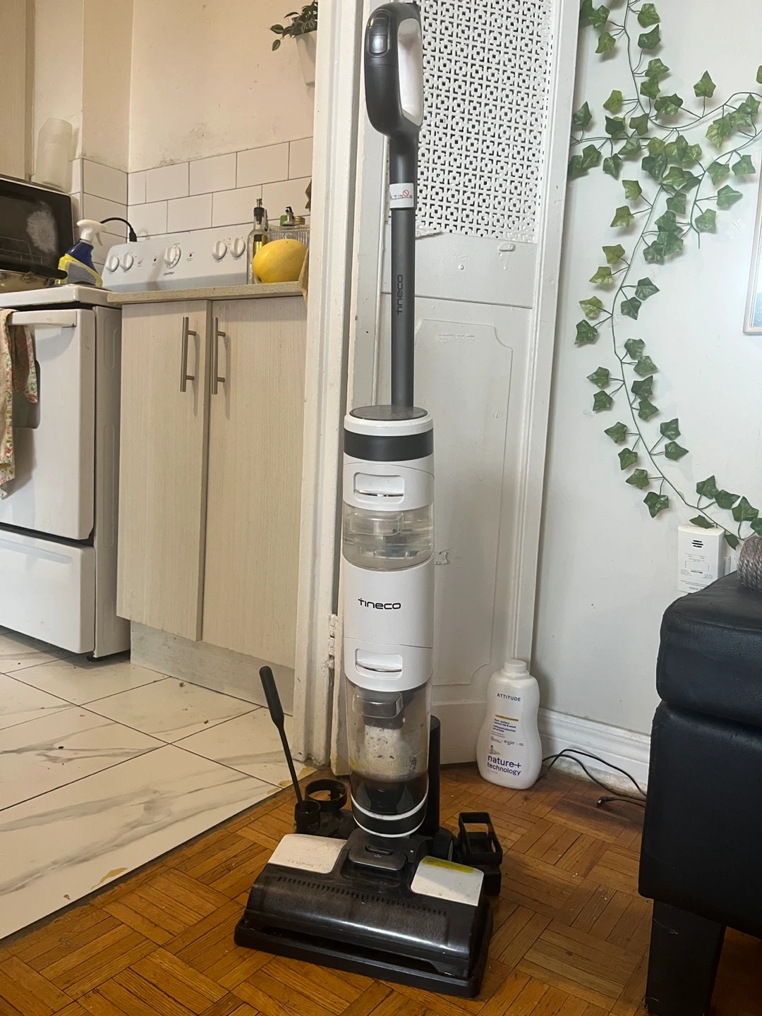 *USED 2 year old* Tineco iFloor 3 IPX4 Wet/Dry Vacuum & Mop. With one push it cleans wet and dry messes. It's designed for efficient floor cleaning. This appliance is great for quick cleanups after meals.