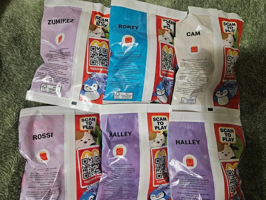 Get a bundle of six original Squishmallow Happy Meal toys from McDonald's. Each toy comes in its own sealed packaging.