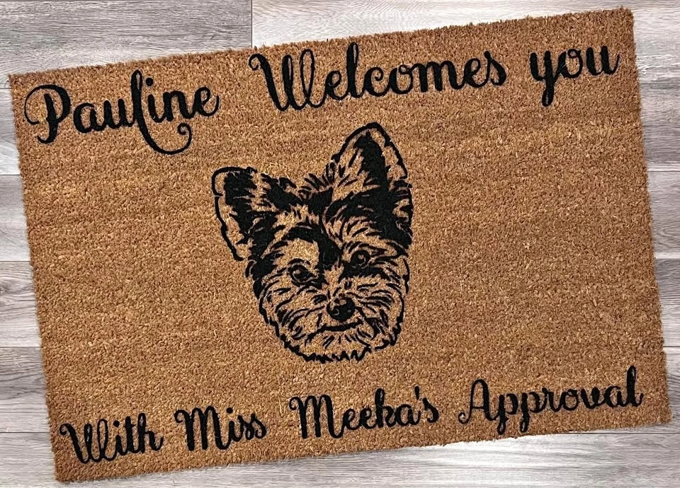 I create a custom one-of-a-kind doormat with your animal's face on it! I need a clear image of the animal. These are made on a 24x35 mat to ensure the image is large enough to see all the features. I can also do a custom saying as well. Additional animals can be added for $20 per animal.