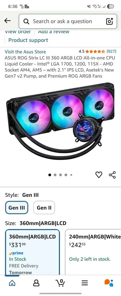Buy & SellRog Strix LC 3 360 AIO LCD CPU Liquid CoolerRog Strix LC 3 360 AIO LCD CPU Liquid Cooler$300New, never used. Originally priced at $375 after tax, now only $300.WHERE TO MEETCheck LocationView MapSELLERmikanFinch556 reviews0 chats·1 favorites·21 viewsSEND CHAT TO SELLERHi mikan! I’m interested in your listing.Hi mikan! I’m interested in your listing.Get the Karrot app to chatSign In to chat