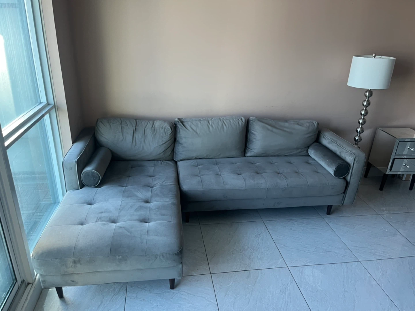Structube Grey Velvet Sectional Sofa with Chaise **MOVING SALE**