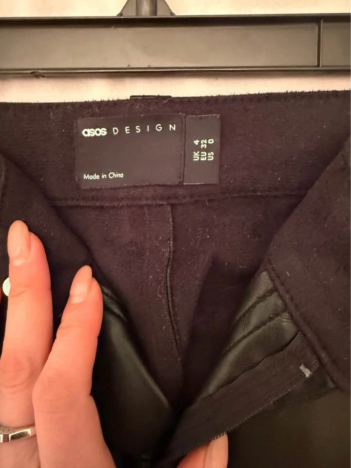 ASOS DESIGN black faux leather pants in like-new condition (5/5). Sleek, flattering fit with a smooth leather-look finish, classic 5-pocket style, and easy-to-style straight/bootcut leg. Perfect with boots or heels.