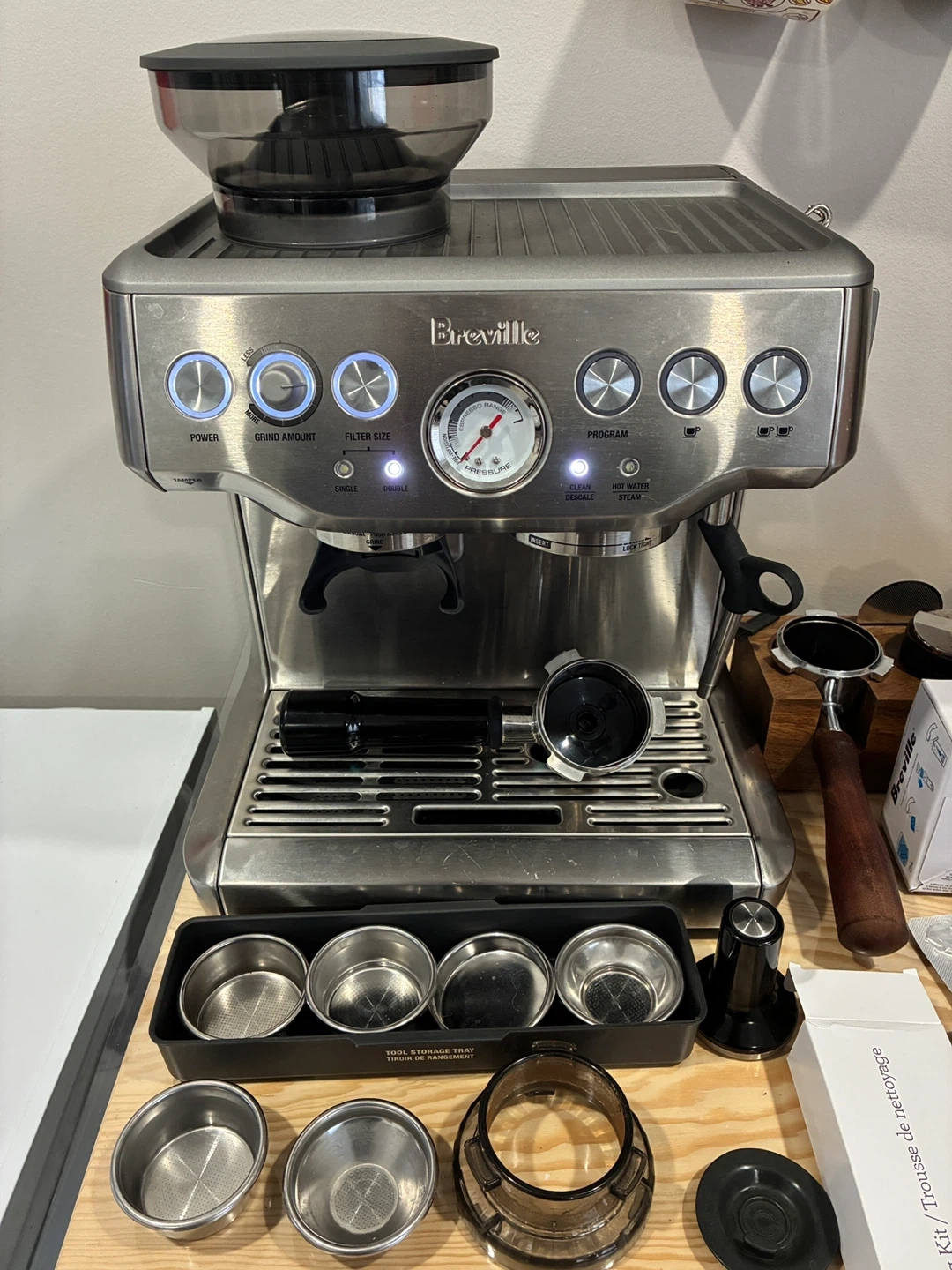 Selling a Breville Barista Express espresso machine. It comes with all original accessories and more shown in the pictures. Notable ones include