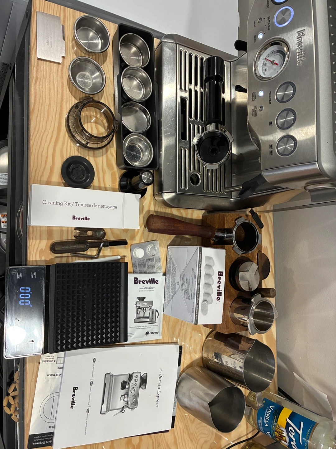 Selling a Breville Barista Express espresso machine. It comes with all original accessories and more shown in the pictures. Notable ones include