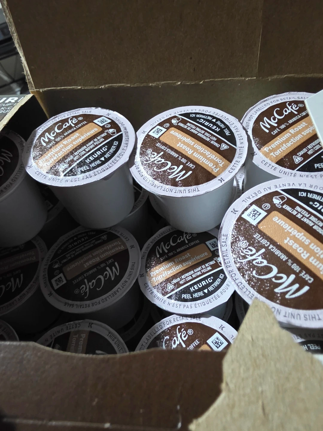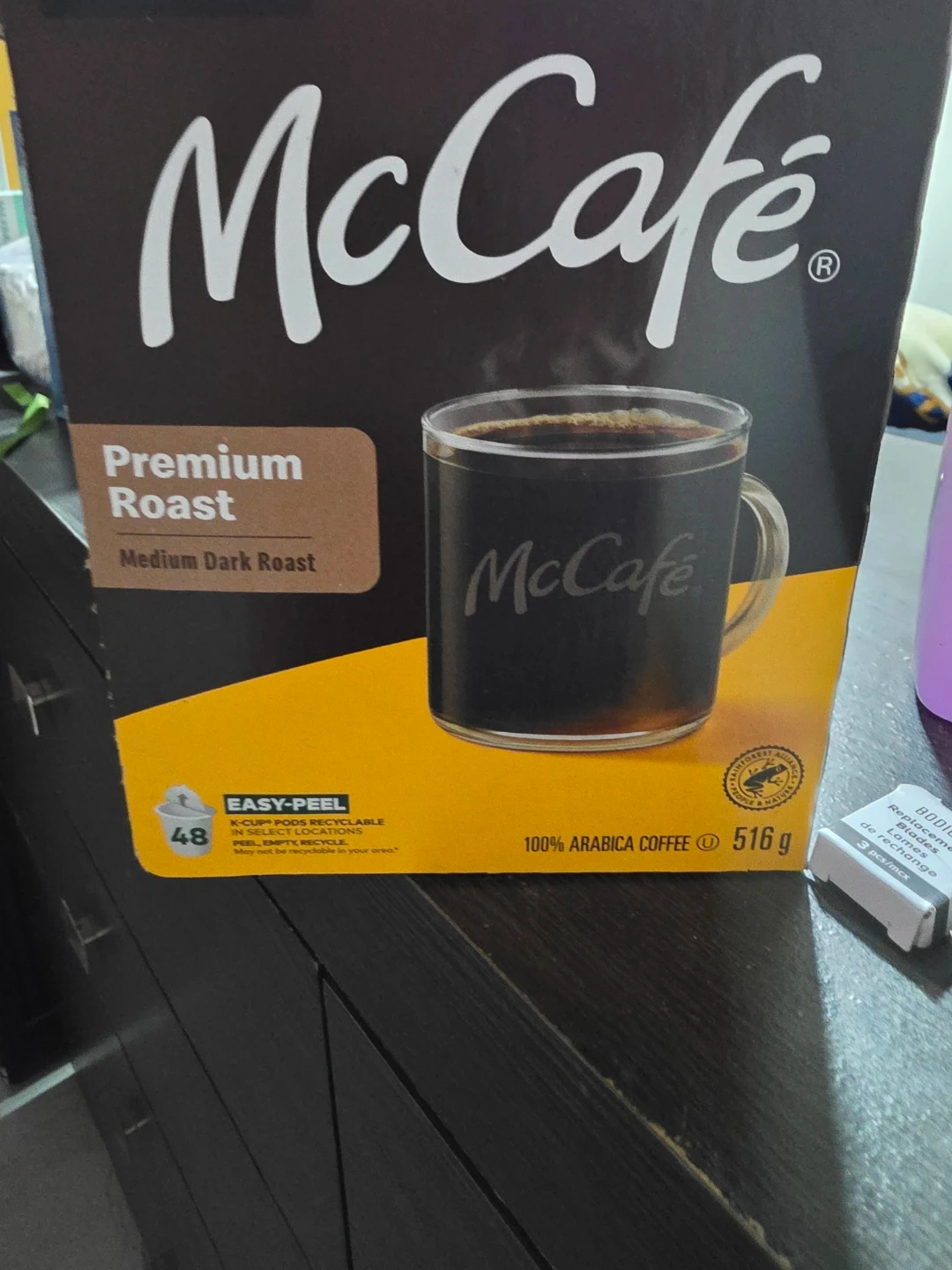 Enjoy McCafé Premium Roast coffee, a medium dark roast blend made with 100% Arabica beans. These K-Cup pods are easy-peel and come in a pack of 48. Best before 2026.