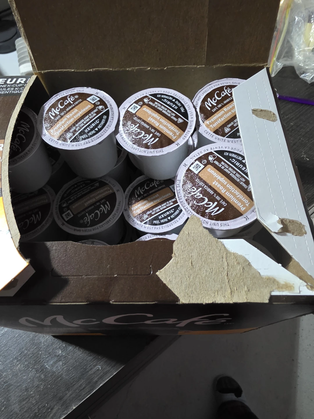 Enjoy McCafé Premium Roast coffee, a medium dark roast blend made with 100% Arabica beans. These K-Cup pods are easy-peel and come in a pack of 48. Best before 2026.