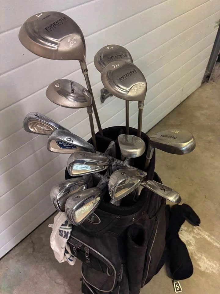 Great starter set women's golf clubs RH. Jazz Ensemble 6000 series c/w Bag. #1 Driver c/w cover. Woods = #5, 6 & 7 c/w cover. Irons = #4, 6, 7, 8 & 9. Sand Wedge. Pitching Wedge. $75 OBO.