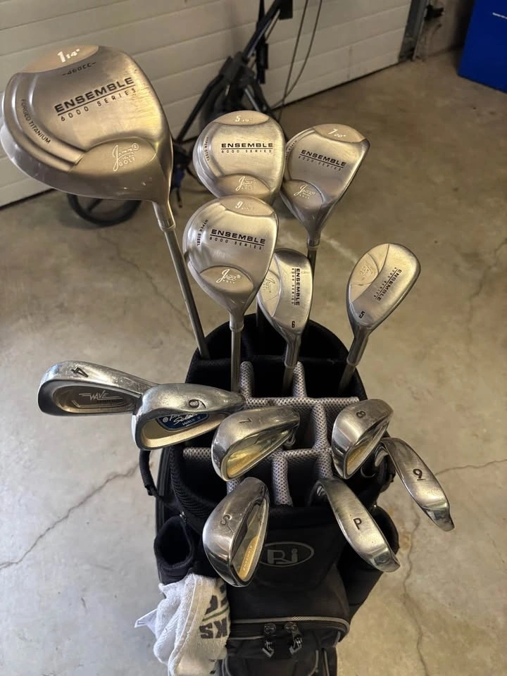 Great starter set women's golf clubs RH. Jazz Ensemble 6000 series c/w Bag. #1 Driver c/w cover. Woods = #5, 6 & 7 c/w cover. Irons = #4, 6, 7, 8 & 9. Sand Wedge. Pitching Wedge. $75 OBO.