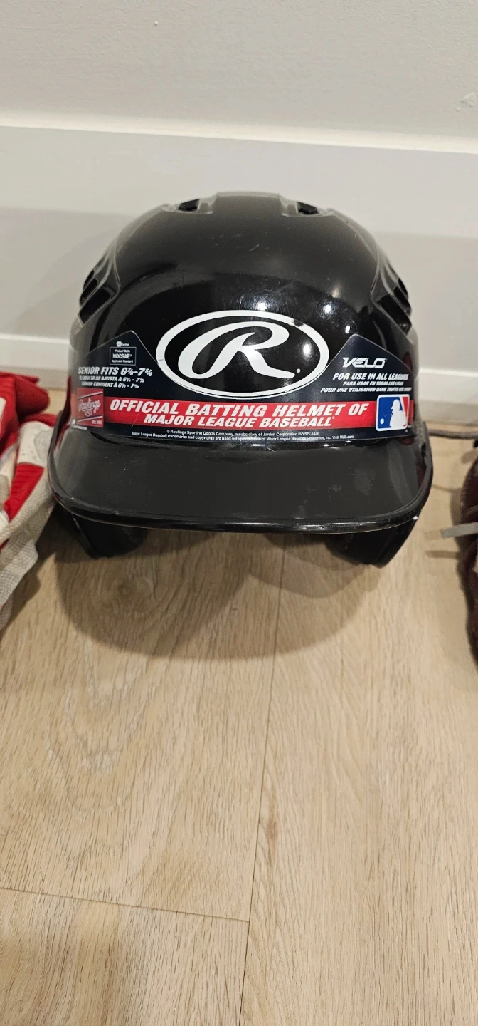 Includes an Easton S650 baseball bat, a Rawlings batting helmet (Senior fits 6 1/2"-7"), and a Rawlings baseball glove. Also comes with batting gloves and a Rawlings gear bag.