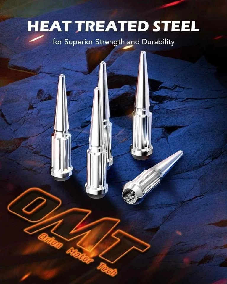 Our cone lug nuts are each made from a single piece of premium A3 steel that has been cold-forged and heat treated for superior strength and longevity; their chrome plating further improves their corrosion resistance.