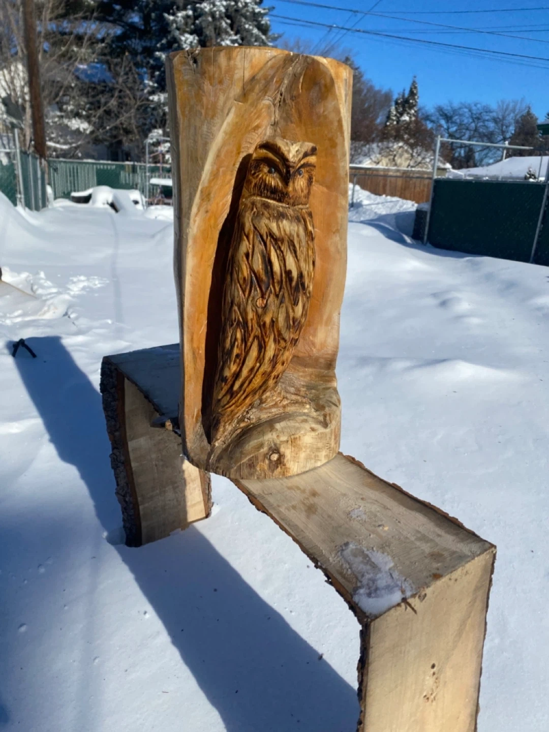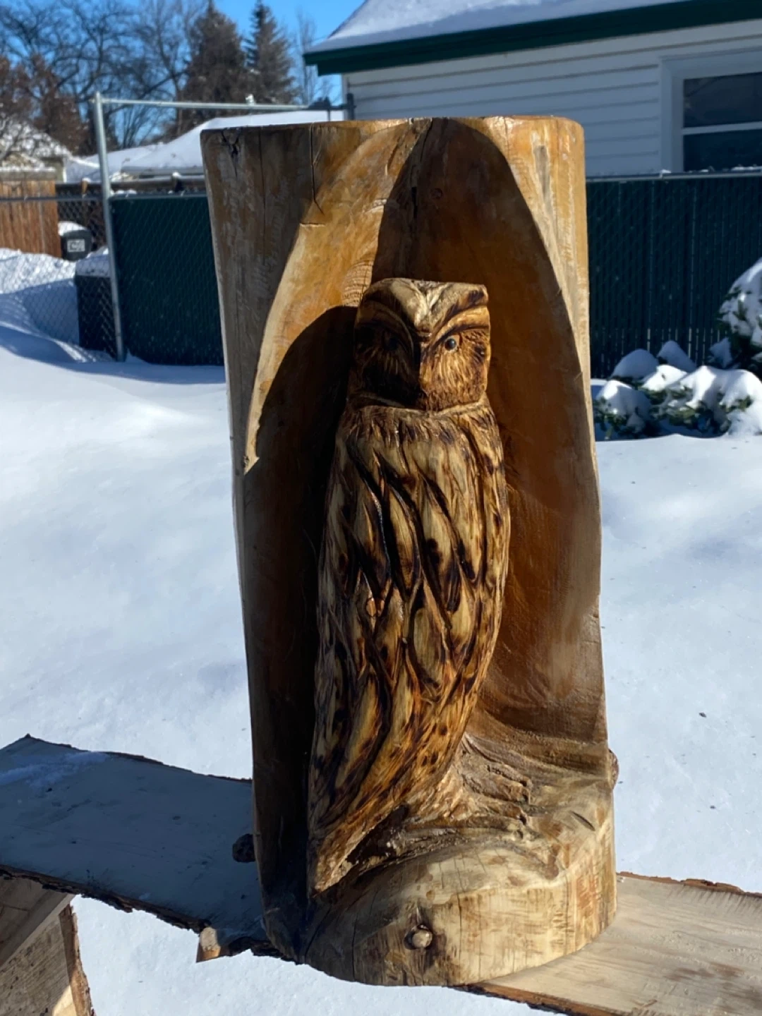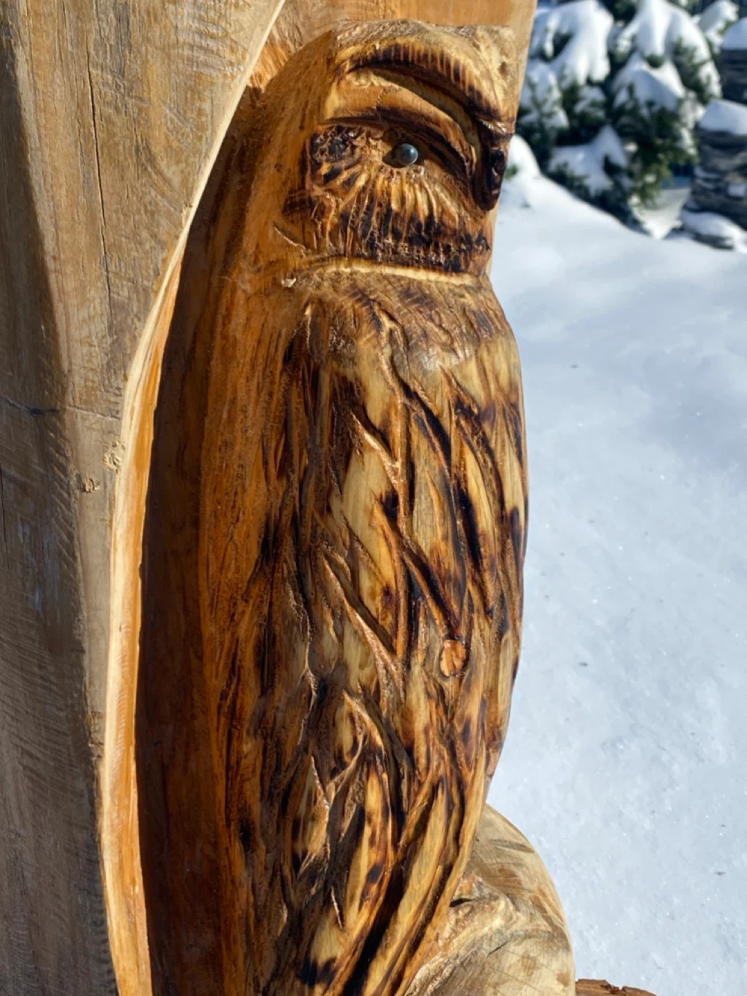 Hand-carved wooden owl sculpture