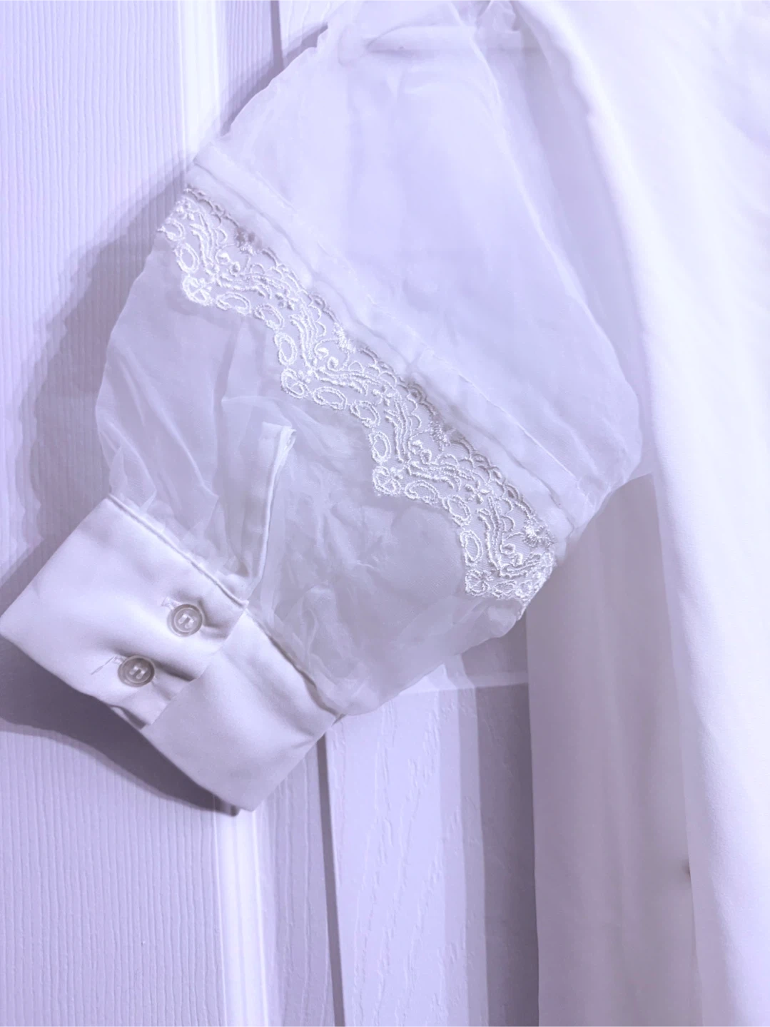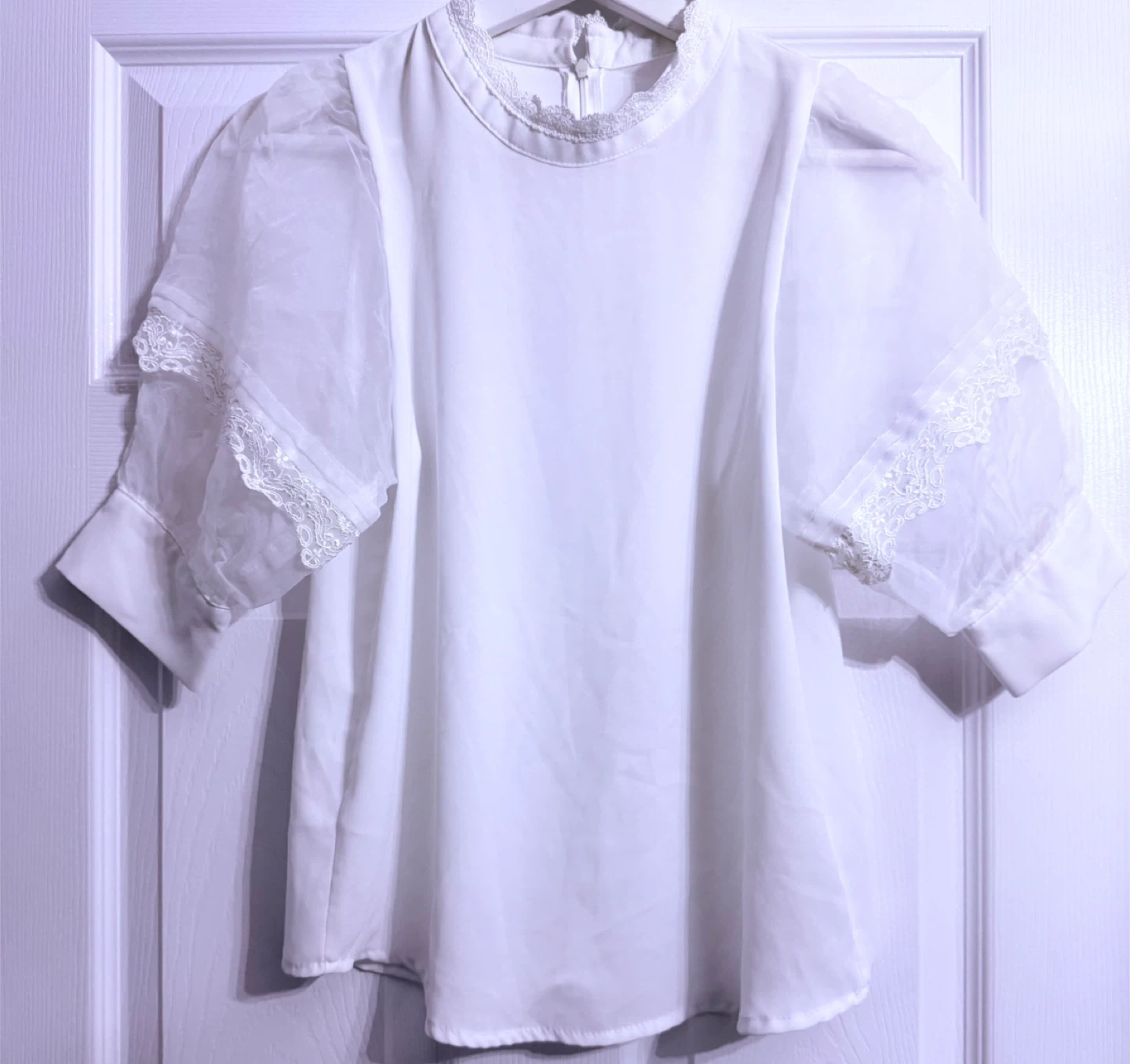 Lovely white blouse featuring delicate lace detailing. It's in great condition and ready for a new home! Perfect for adding a touch of elegance to any outfit