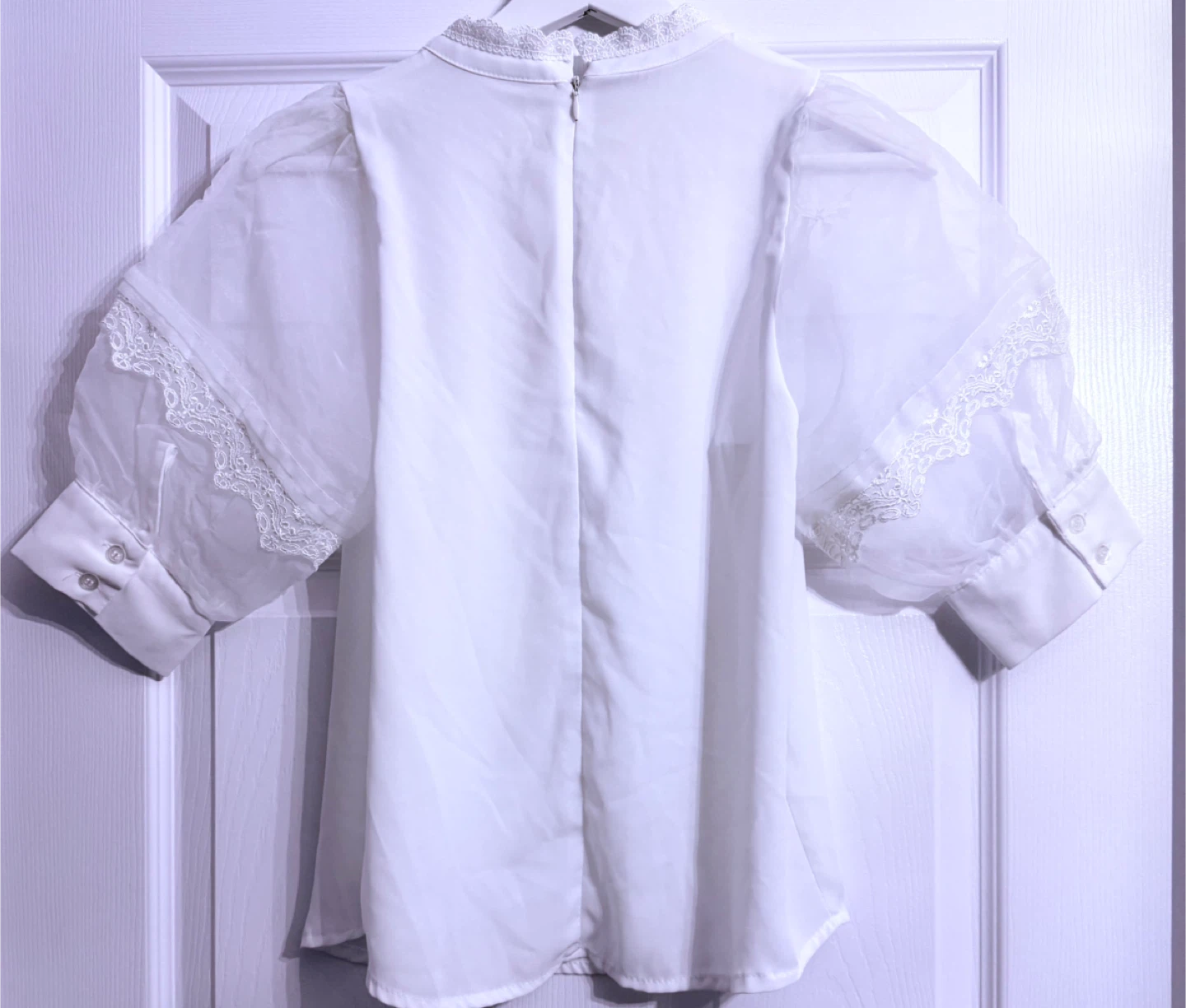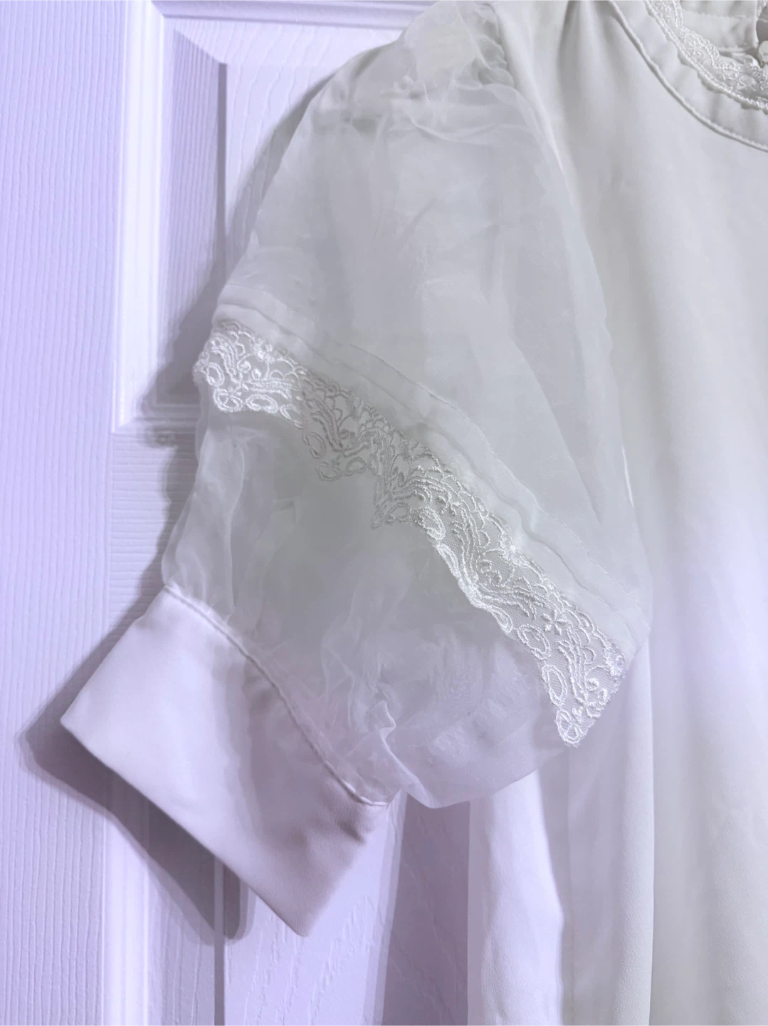 Lovely white blouse featuring delicate lace detailing. It's in great condition and ready for a new home! Perfect for adding a touch of elegance to any outfit