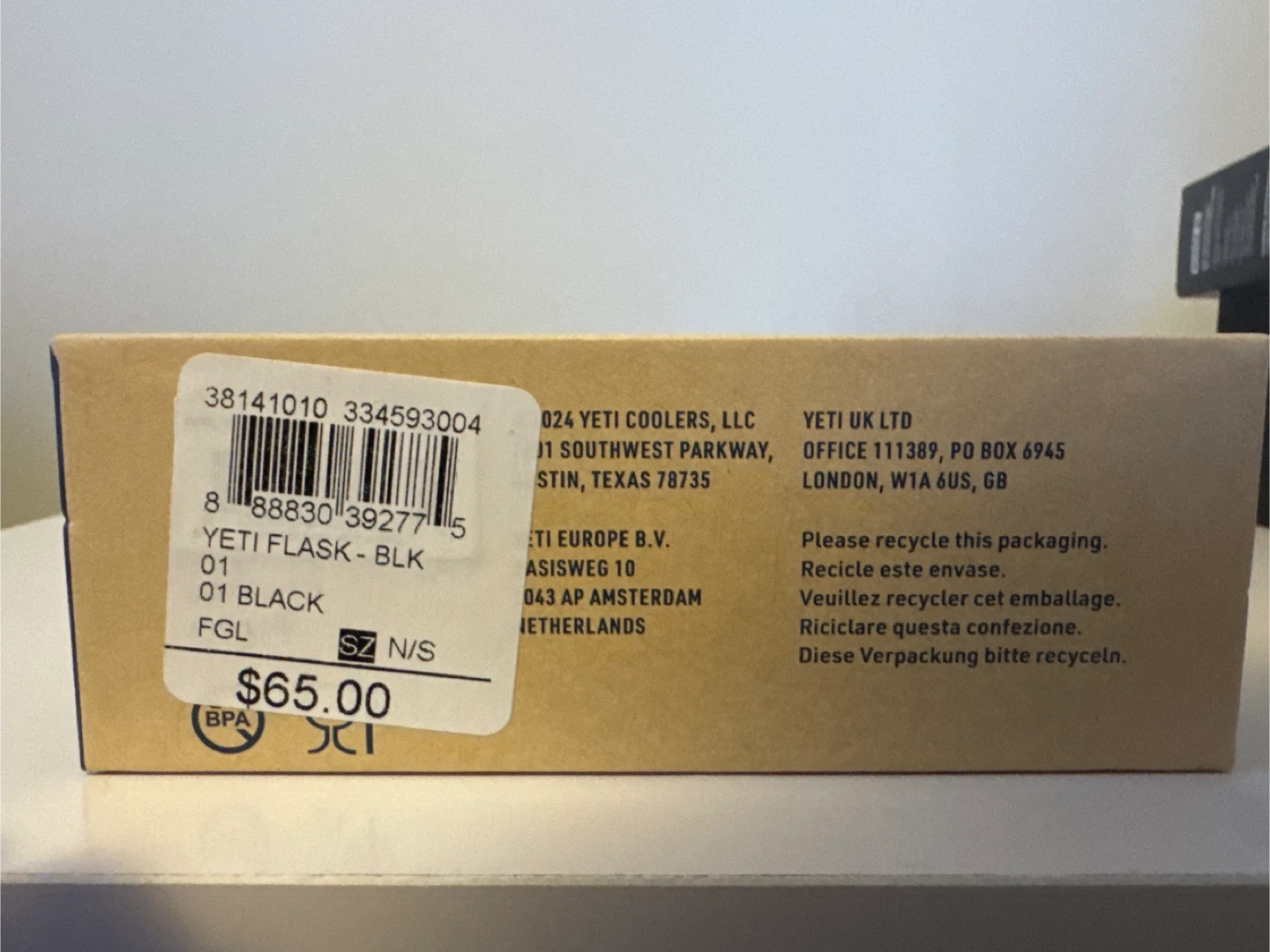 This is a Yeti flask in black. It's designed for keeping beverages at your desired temperature. This flask is durable and ready for outdoor adventures.