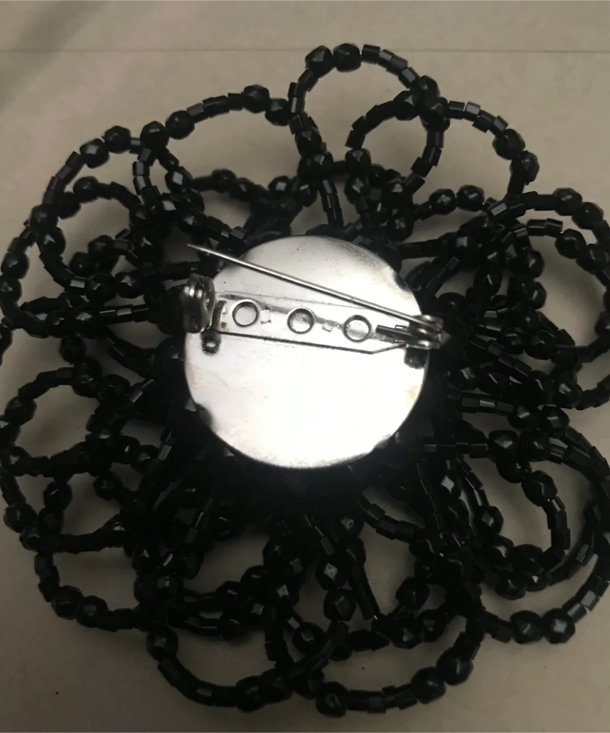 Lot 2 - Black Beaded Flower Brooch, New-never worn. Comes with black velvet pouch. Asking $10.