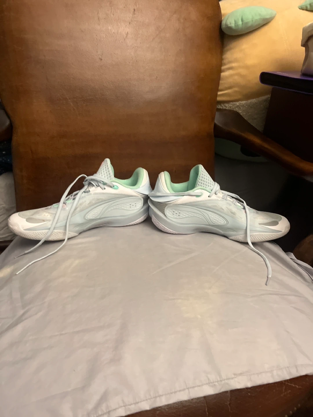 Li-Ning 808S basketball shoes in white, light blue, and mint green. Size 9.5 US, 43 EUR. Includes original box. Used 3 times good condition