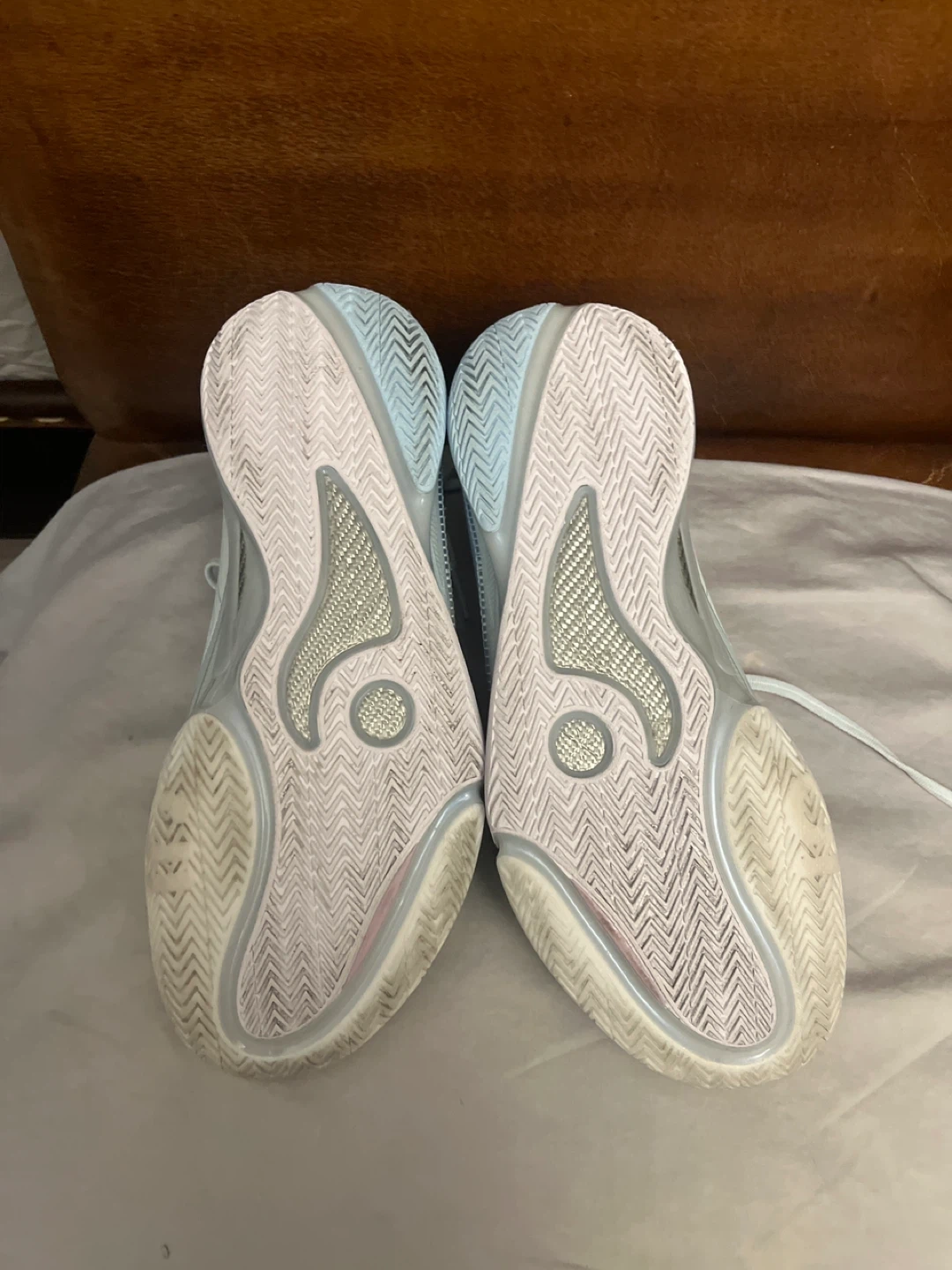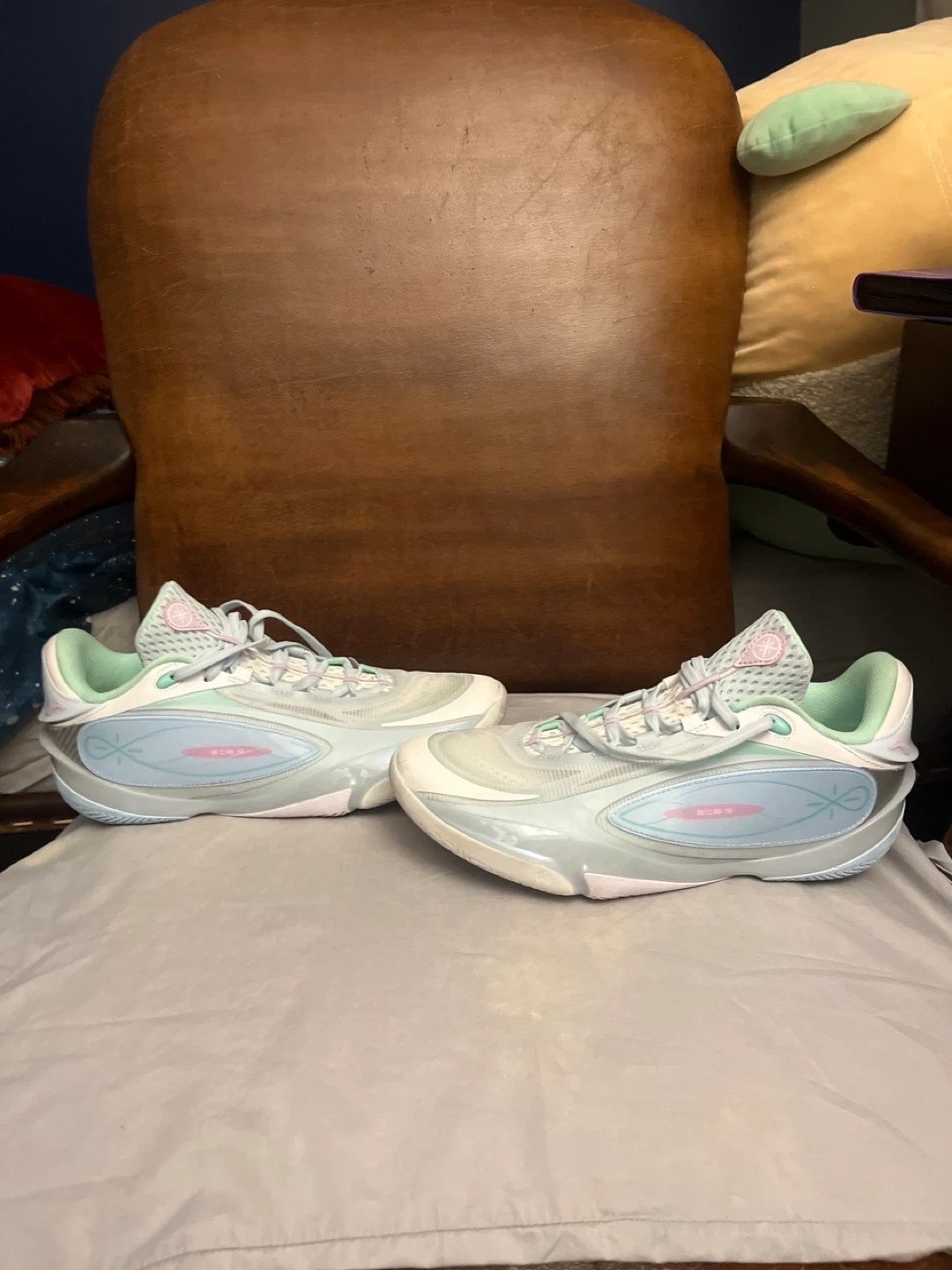 Li-Ning 808S basketball shoes in white, light blue, and mint green. Size 9.5 US, 43 EUR. Includes original box. Used 3 times good condition
