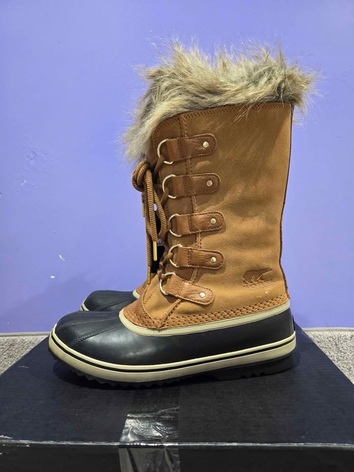 These are supportive SOREL women’s winter boots, great for both indoor and outdoor cold-weather wear. They feature a removable 6mm washable recycled felt liner with a 2.5mm bonded frost plug for extra warmth. The construction is seam-sealed and waterproof, with a durable rubber sole for stability and abrasion resistance. The waterproof vulcanized rubber shell and herringbone outsole offer excellent grip and all-day comfort. Pickup near Dixie & Kingston Rd, Pickering. See my other listings and bundle up for extra savings!