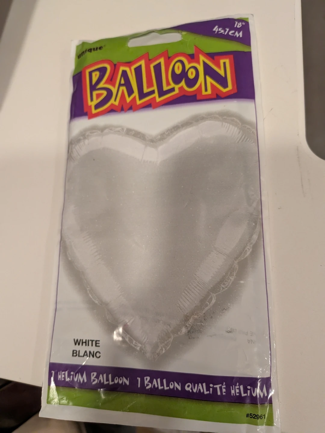 This is an 18-inch white heart-shaped balloon, suitable for helium inflation. It's made of quality material for durability. Great for celebrations or decorations!