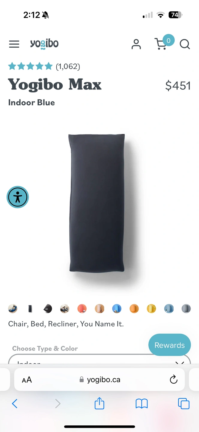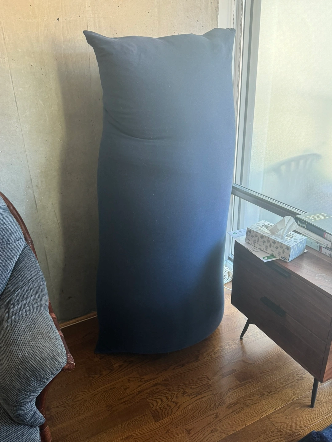 This is a Yogibo Max beanbag chair in the colour navy blue. It is very comfortable and versatile. Here’s the original listing: https://yogibo.ca/products/yogibo-max.
