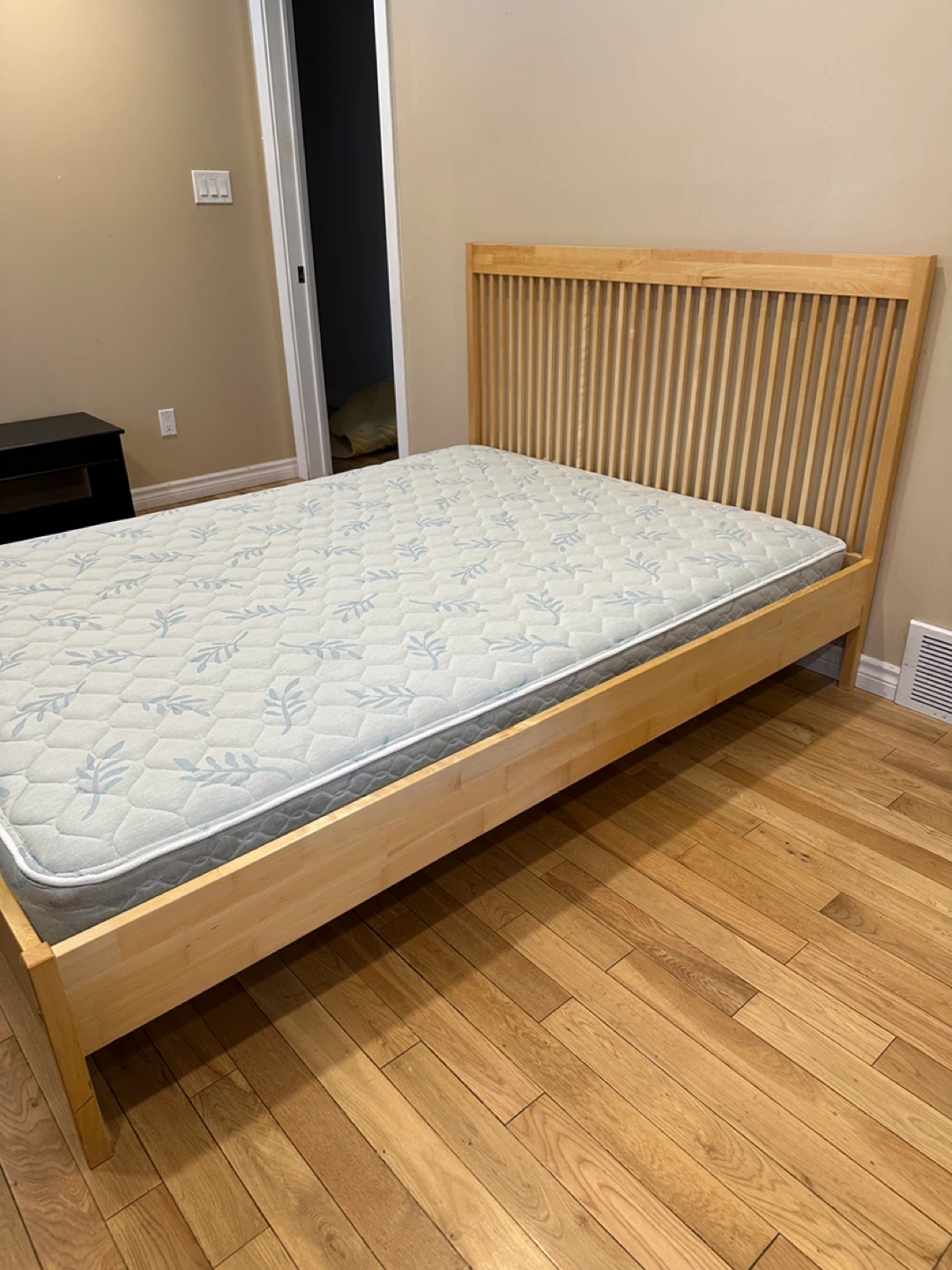 IKEA Queen Size Birch Wood Bed Set (CAN DELIVER)