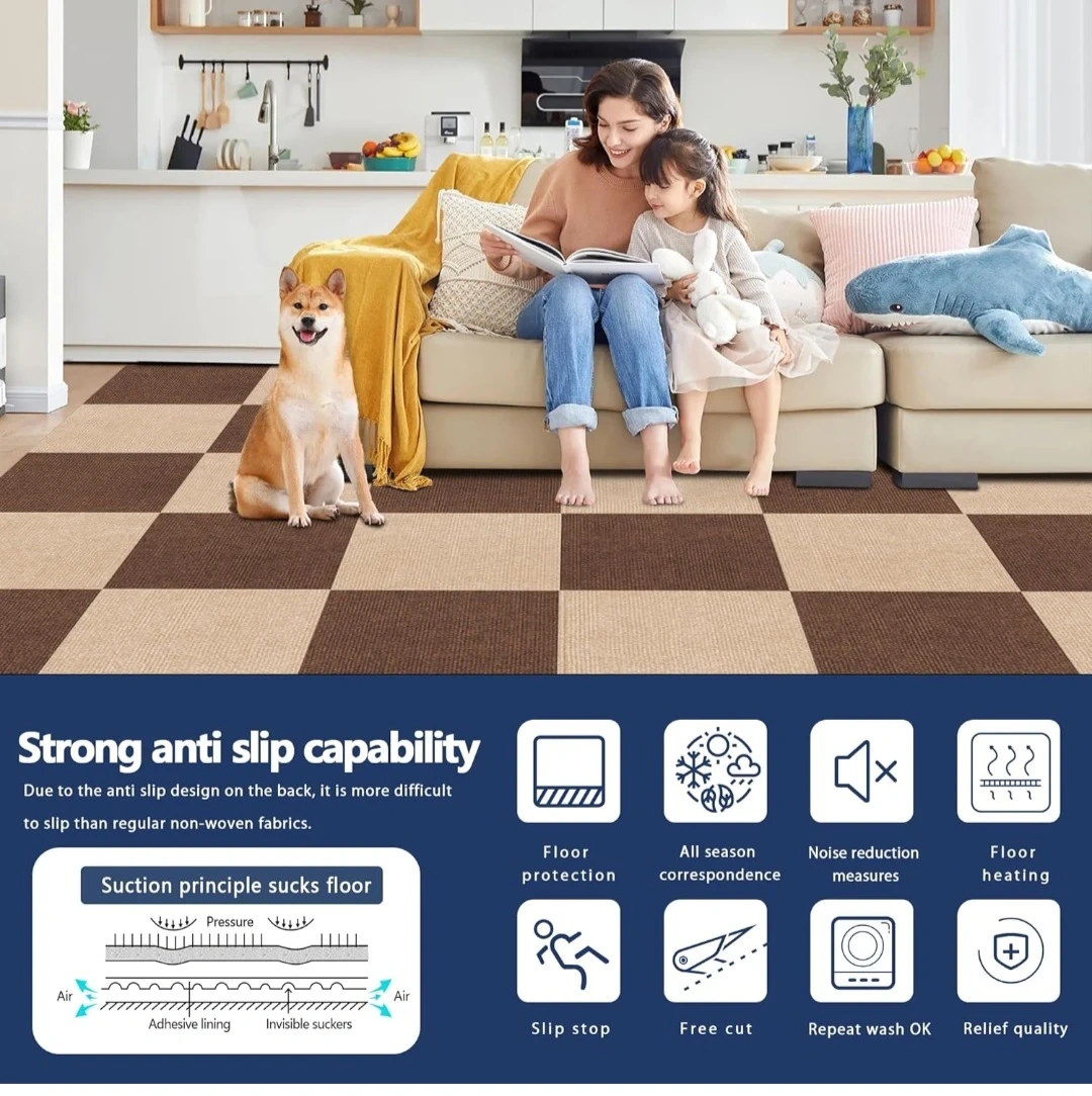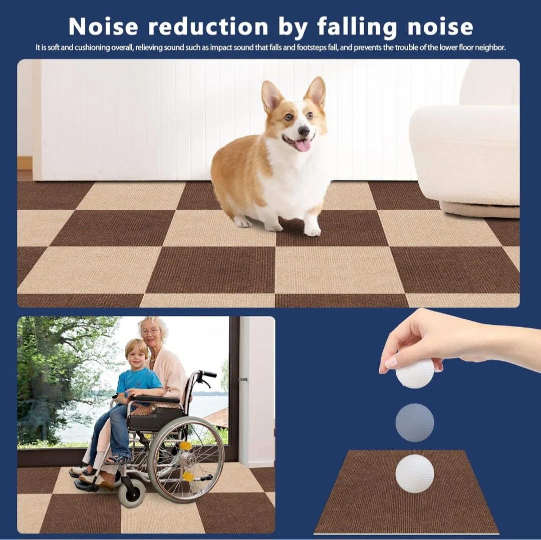 Splicing Mats,Floor Mat Climbing Area Rugs,Non-Slip Carpet Rugs for Living Room Bedroom Playroom,11.81x11.81x0.16IN Play Mat Corridor Mats for Kids Elders and Dogs,18 Pcs(Brown&Beige)
