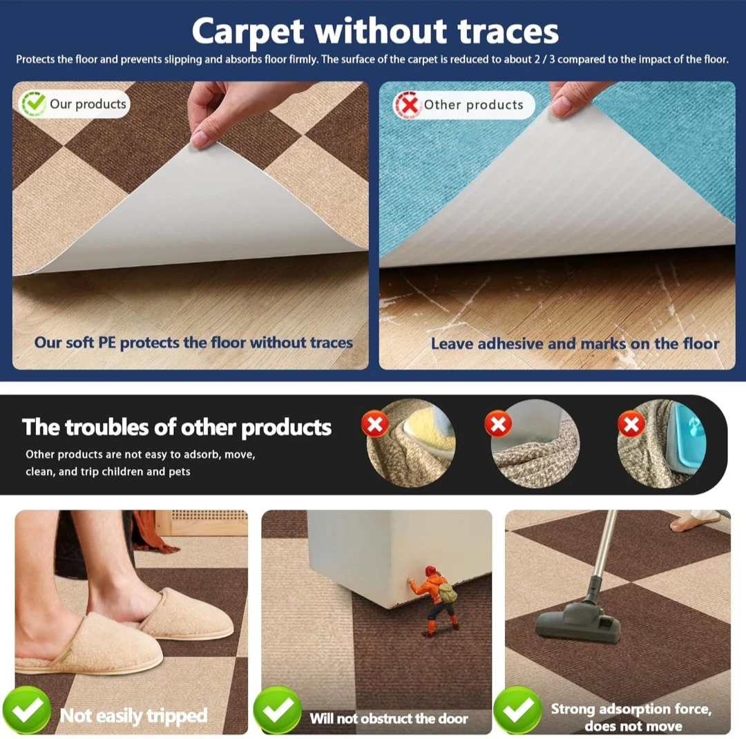 Splicing Mats,Floor Mat Climbing Area Rugs,Non-Slip Carpet Rugs for Living Room Bedroom Playroom,11.81x11.81x0.16IN Play Mat Corridor Mats for Kids Elders and Dogs,18 Pcs(Brown&Beige)