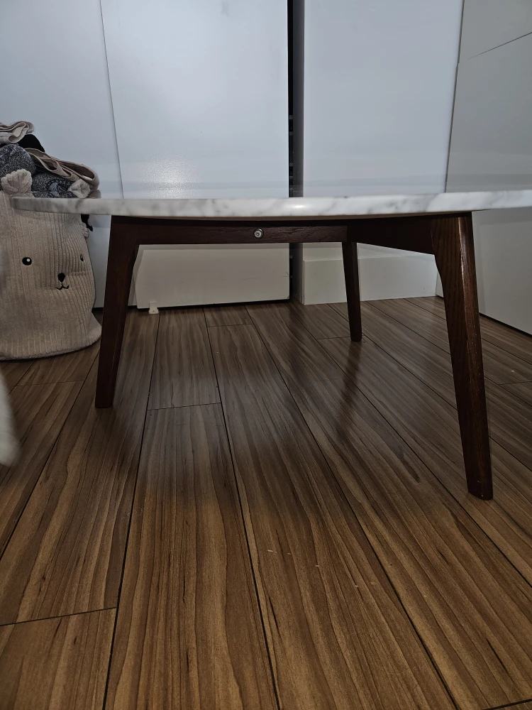 Selling a 31.5" Marble coffee table from Article. In good condition. A minor scratch and some water marks that are only noticeable in certain lighting as seen in pics.
