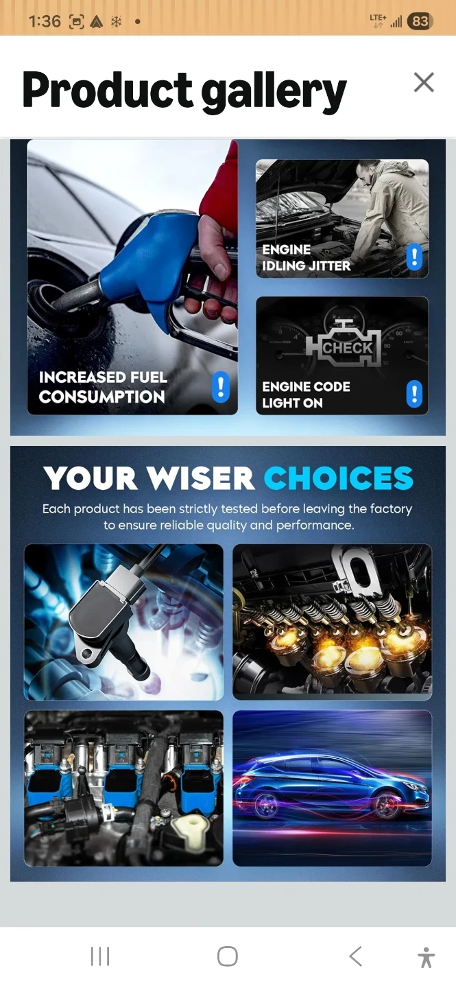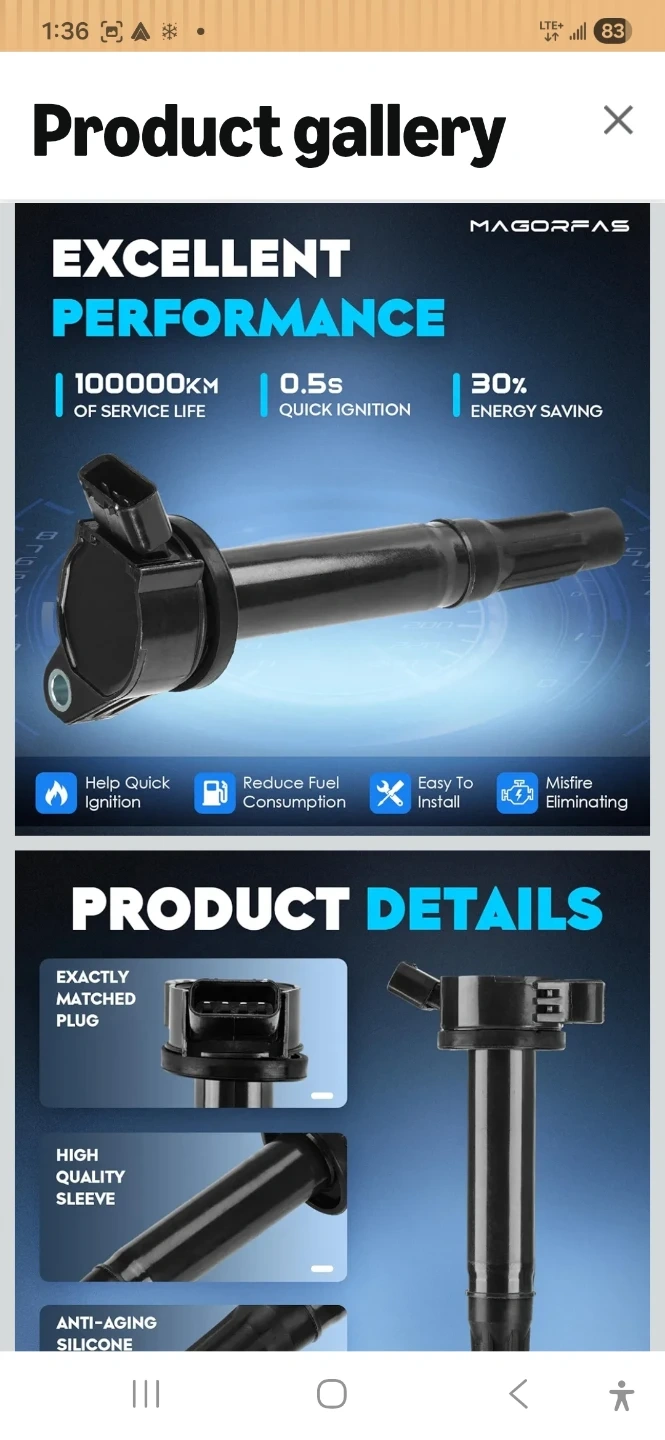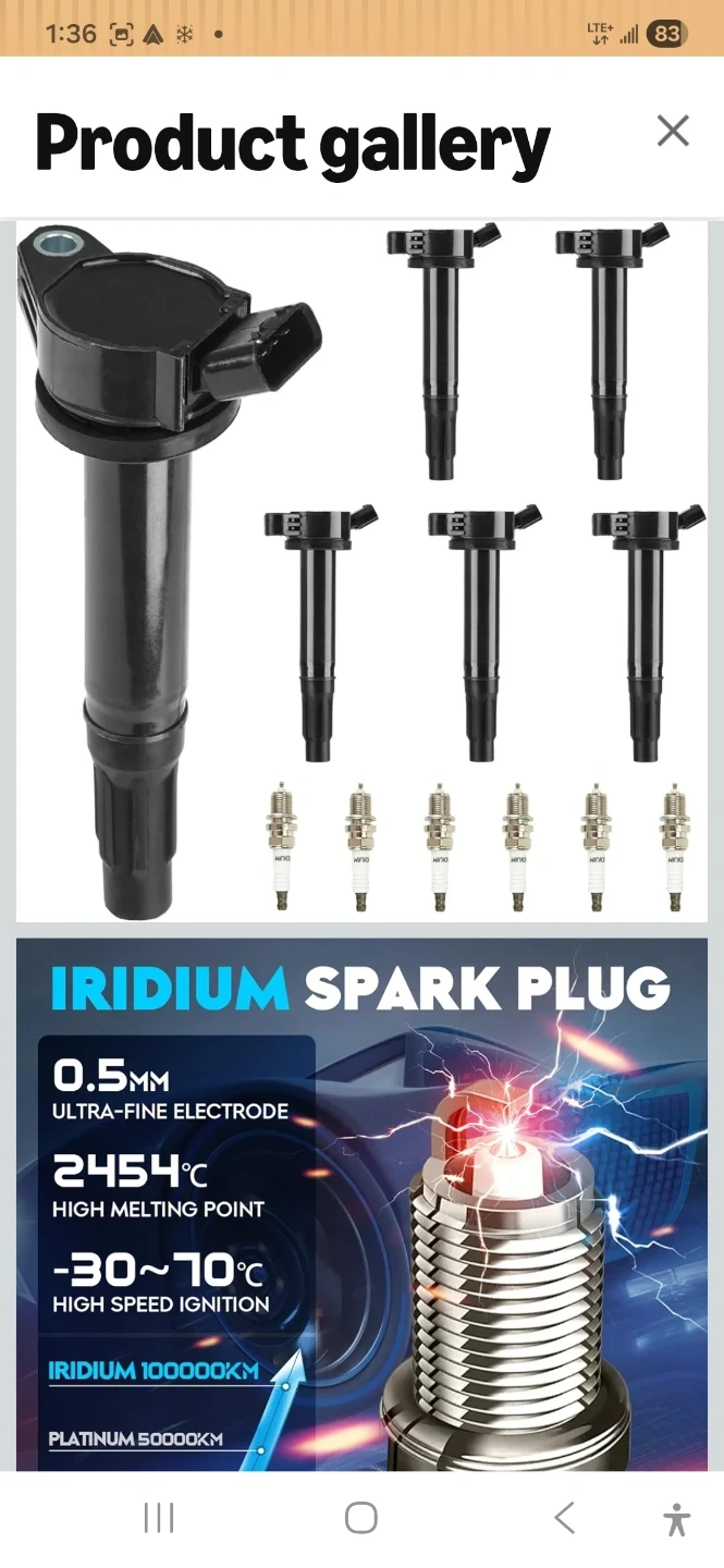 Set of 6 ignition coils with iridium spark plugs. Designed for 100000km service life and quick ignition. Helps reduce fuel consumption and misfires.