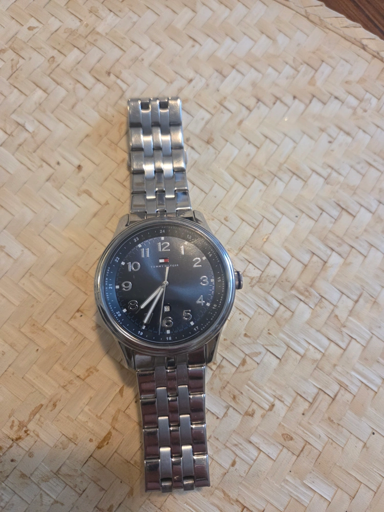 Selling a Tommy Hilfiger men's watch. It comes with its original box! It's in great condition and ready for a new owner. A stylish accessory for any outfit