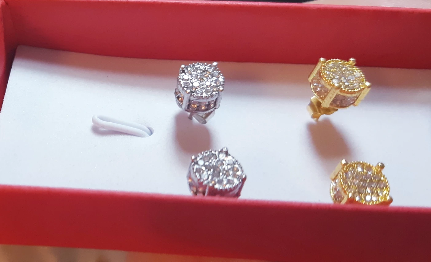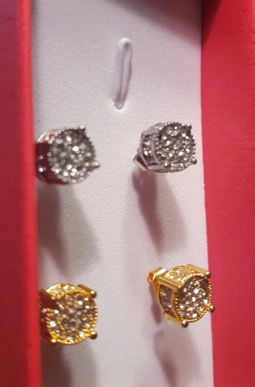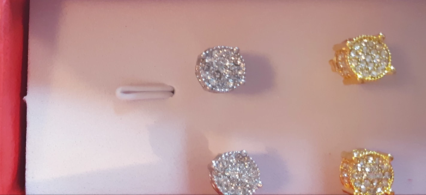 Selling a set of stud earrings, including both gold and silver colours. They come in a box, perfect for gifting or keeping them safe!