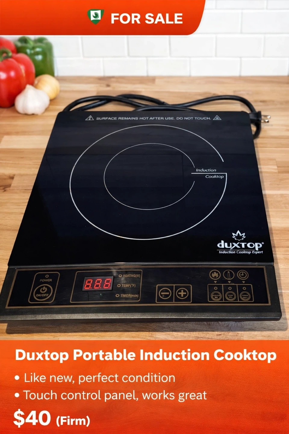 Like new, perfect condition portable induction cooktop. It has a touch control panel that works great! This cooktop is perfect for small kitchens or dorm rooms.