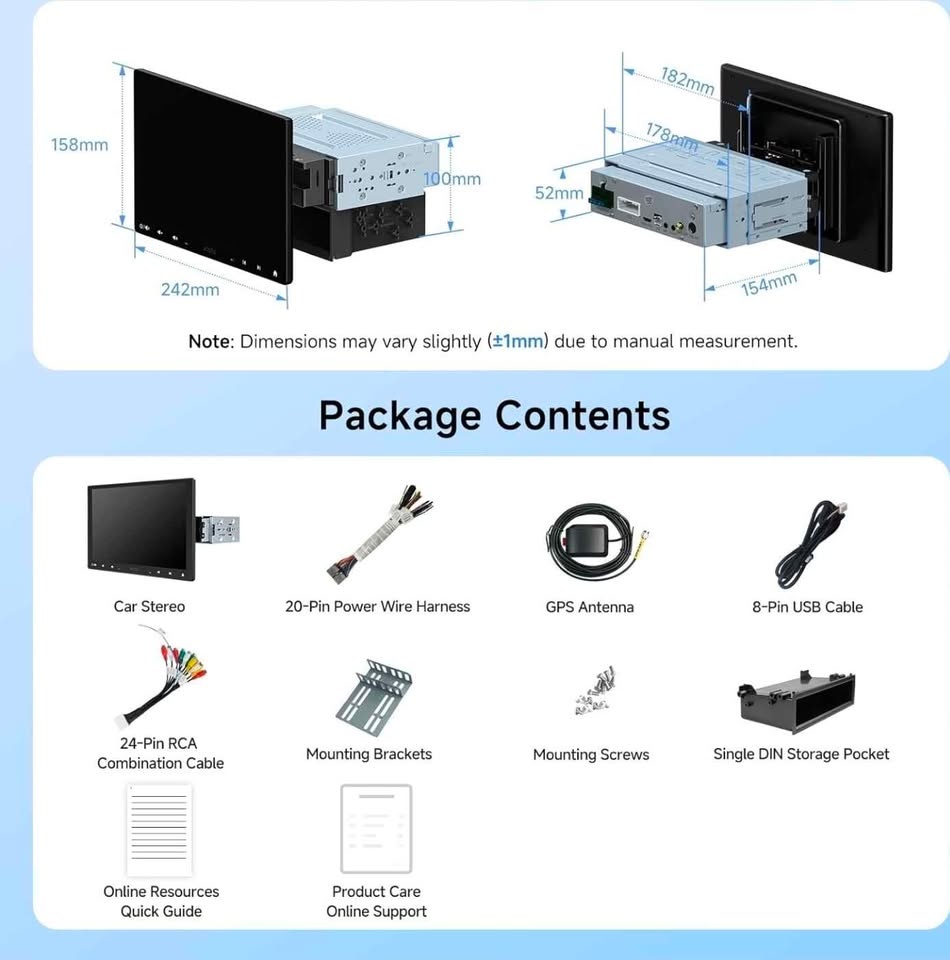 Brand new sealed head unit. 10.1 inch Double DIN & Single DIN Adaptive Car Stereo, Floating Display, Wireless CarPlay&Android Auto, 2G+32G, WiFi/Bluetooth/USB Tethering, MirrorLink, DSP, AI Chat. Note: I don't do installation.