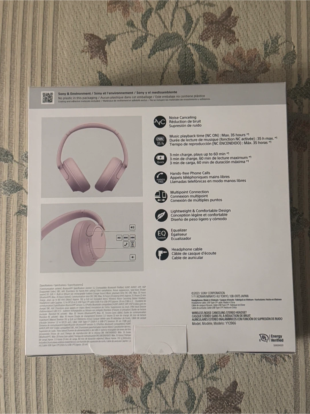 Sony WH-CH720N wireless headphones with noise cancelling. Up to 35 hours of music playback time. Features hands-free calls and multipoint connection. Includes a headphone cable.