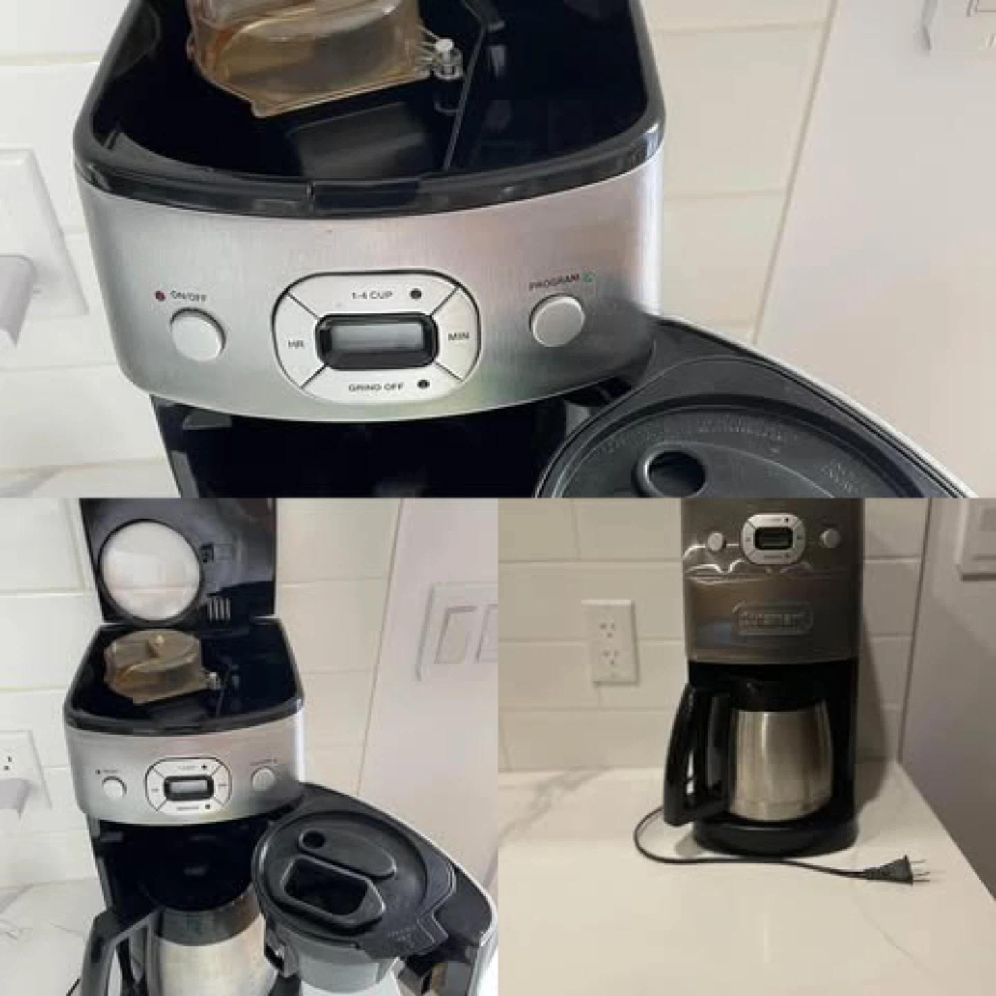 This Cuisinart coffee maker features a thermal carafe to keep your coffee hot. It has programmable settings for brewing and a 1-4 cup option. It also has a built-in grinder for fresh coffee! This machine is great for making your morning brew.