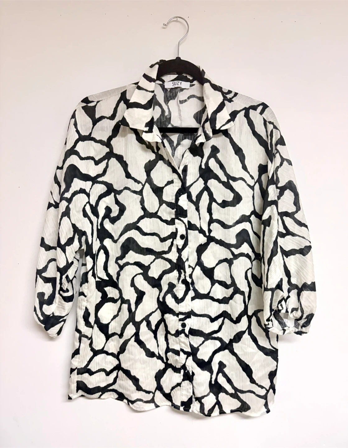 Black &White Abstract Print Blouse - Size XS 🏆