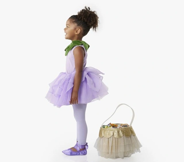 Tiny tots can transform into blooming flowers with this sweet Halloween costume. It's made from ultra-comfy fabric with petal-perfect details like green appliqué leaves at the neck and airy organza on the skirt. This is a 2-piece set including a top and a tutu. The separates make changing easier. Super soft fabrics are cozy and comfy on the skin, with soft elastic waistbands and trims that are great for sensitive skin. The top is 95% polyester, 5% spandex knitted jersey fabric with green velour leaves around the neck and a snap tape opening on the backside. The tutu is made of 71% polyester, 29% nylon organza petals and 100% polyester mesh layers, with a 100% polyester satin lining and an elastic waistband. Slippers are 95% polyester, 5% spandex with 100% lining. The costume is yarn-dyed for vibrant, lasting colors.