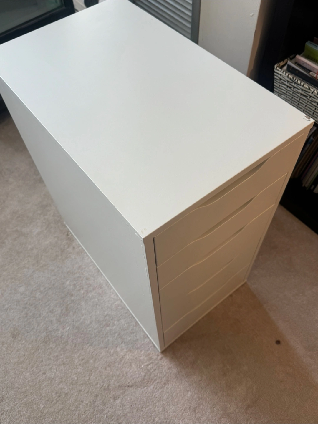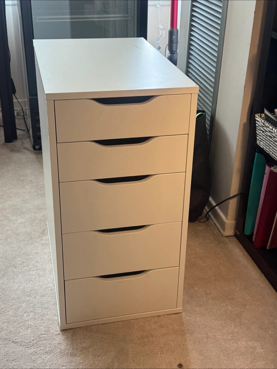 A white chest featuring six drawers. It has a simple and elegant design. It's a useful storage solution for any room, making it a great place to organize your items, and find a sense of calm.
