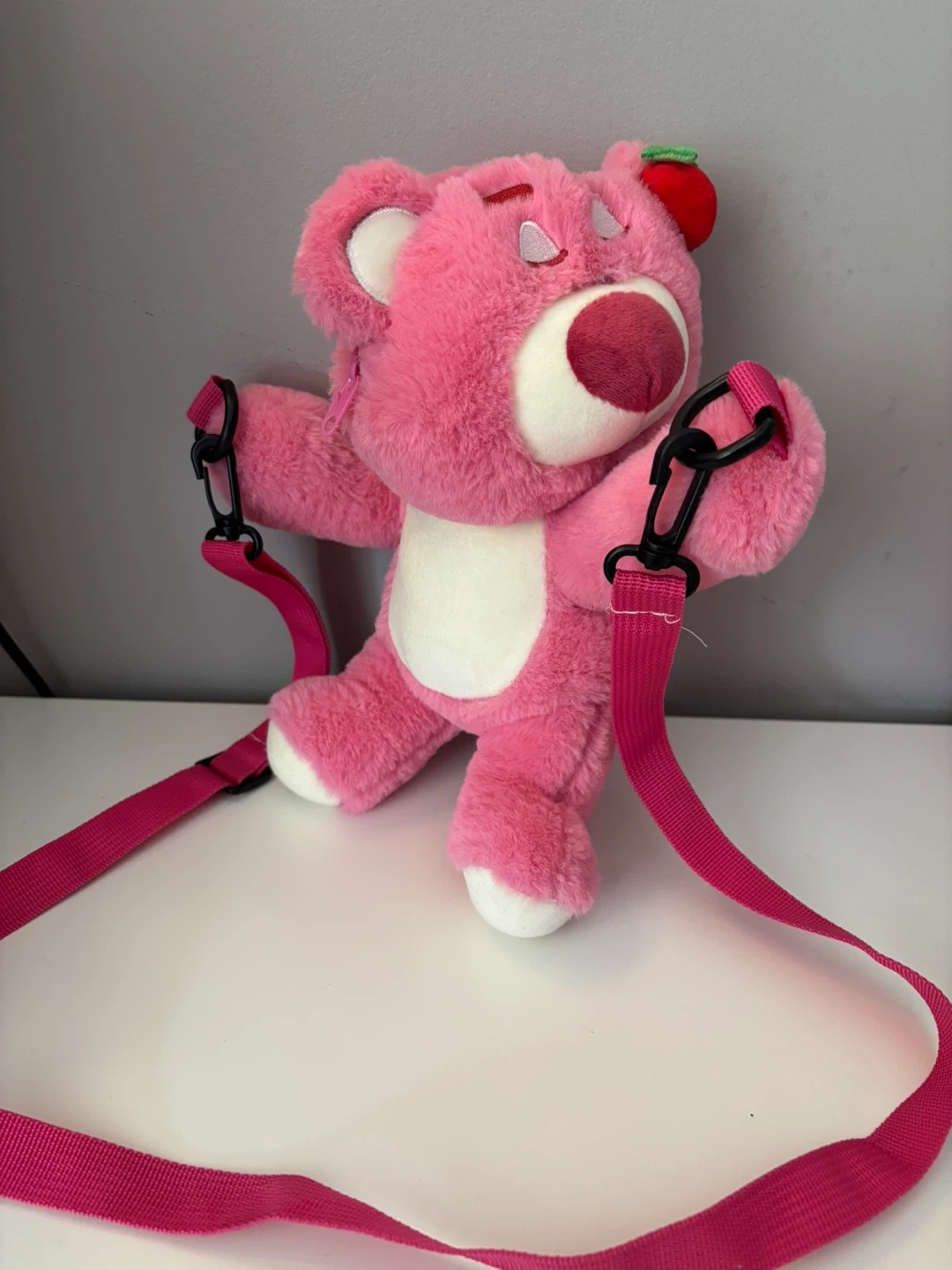 Pink lotso plush bag! It’s just been sitting in my closet and I’m moving so I don’t have room to store it anymore.