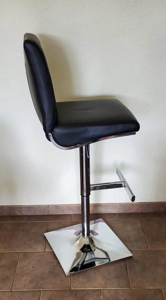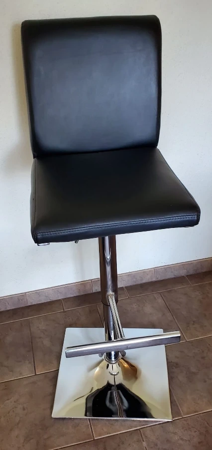 This stool easily adjusts up and down to allow for comfortable sitting at bar or counter heights. A brushed stainless steel frame and a solid Square base make for a sturdy stool. The leather textile with refined stitching makes this a great addition to your house