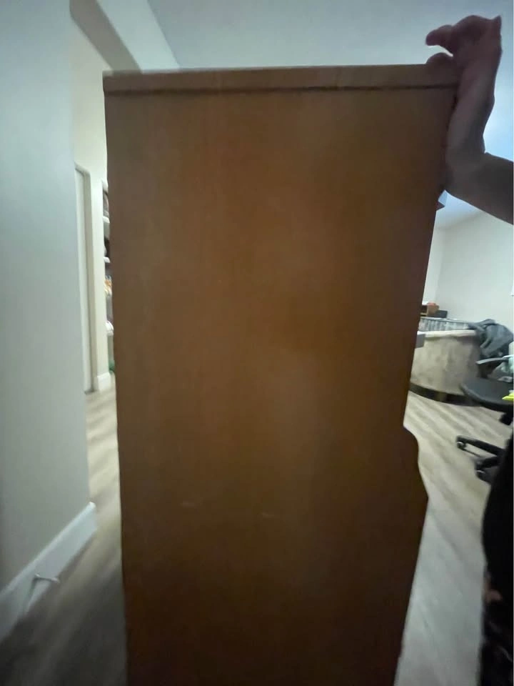 Pick up only. One little bit is chipped but it’s not very noticeable only when you’re up close. The drawers are able to hold a bit of stuff, there’s 5 in total. The measurements are H: 50”, L: 34.5”, W: 17”. Let me know if you’re interested!