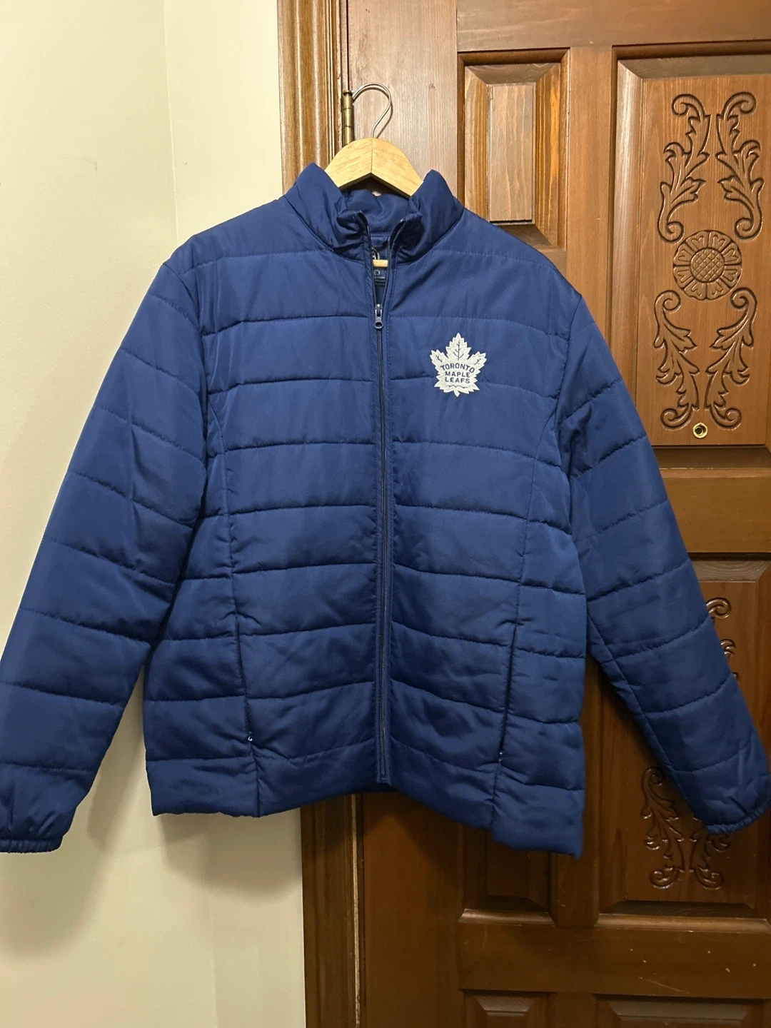 Keep warm with this Toronto Maple Leafs puffer jacket! It's a size large and in great condition. Perfect for showing your team spirit during those chilly Canadian Fall weather. It’s got 2 inner pockets and 2 outer pockets.