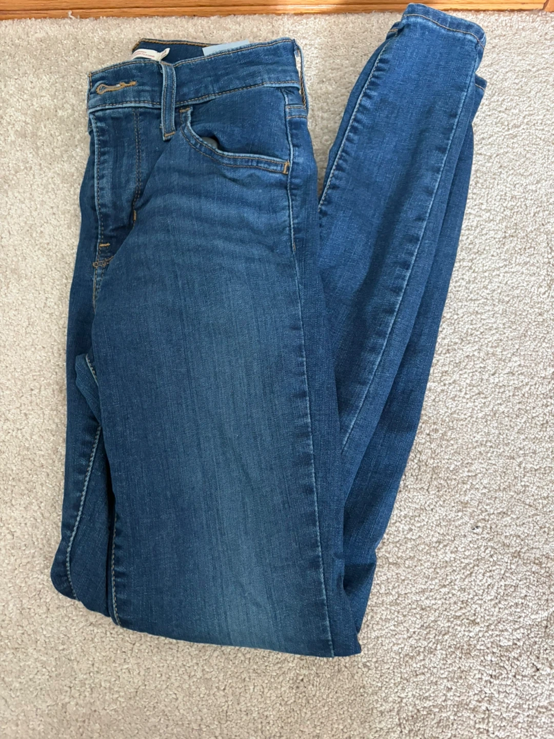 Levi's 720 High Rise Super Skinny Jeans in a size 24. These dark wash jeans offer a comfortable and flattering fit. They're made from denim.