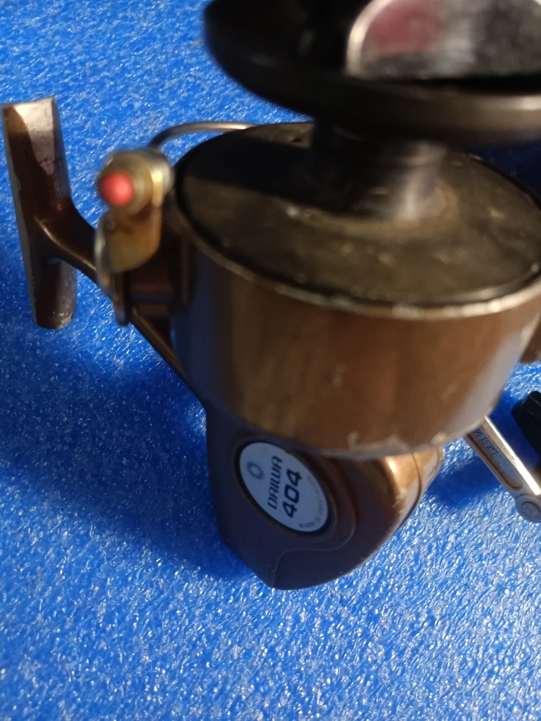 This is a vintage Daiwa 404 fishing reel. It's a classic piece for any angler's collection. The reel is bronze-coloured and appears to be made of metal.